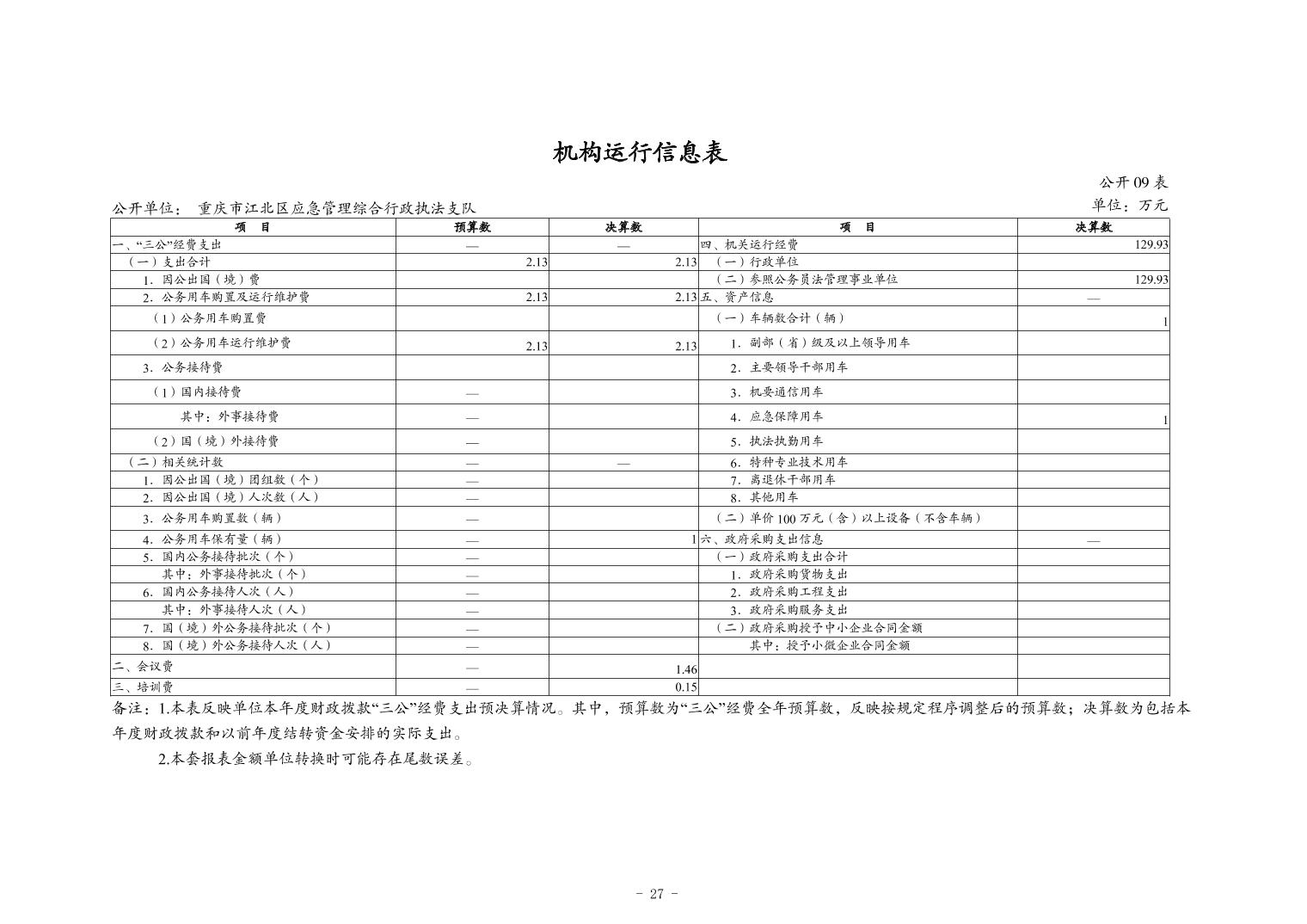 重慶市江北區應急管理綜合行政執法支隊2023年度決算公開說明