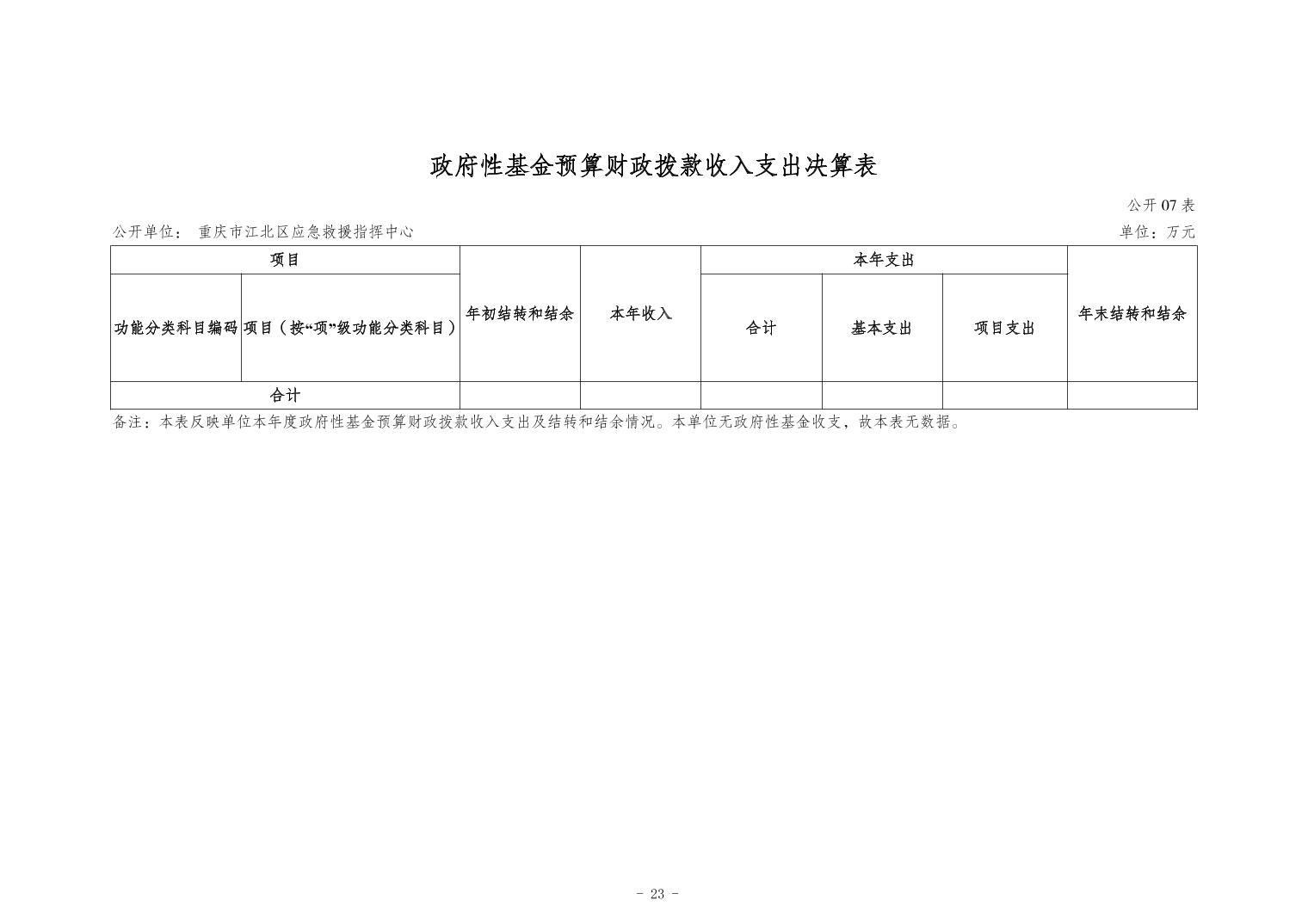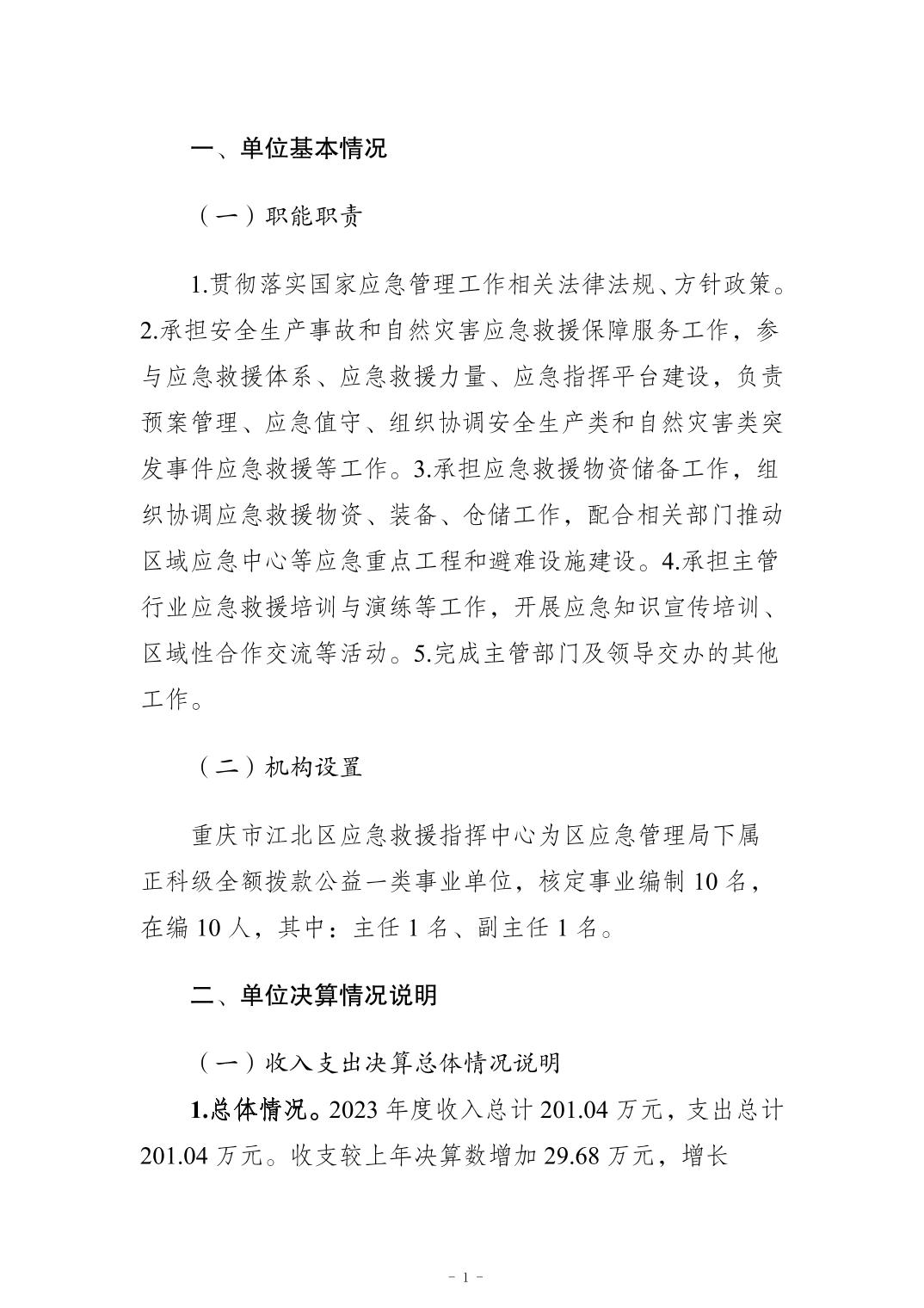 重慶市江北區應急救援指揮中心2023年度決算公開說明