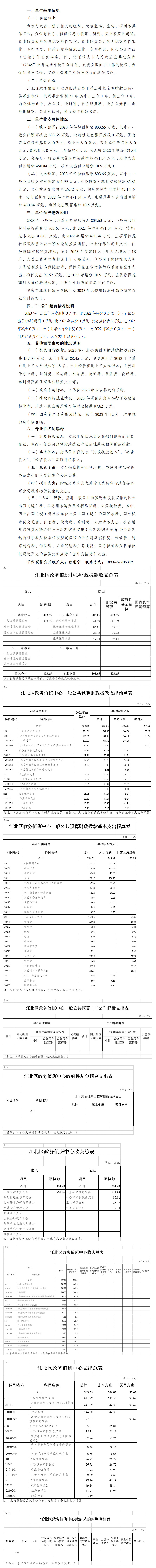 重慶市江北區政務值班中心2023年單位預算情況說明
