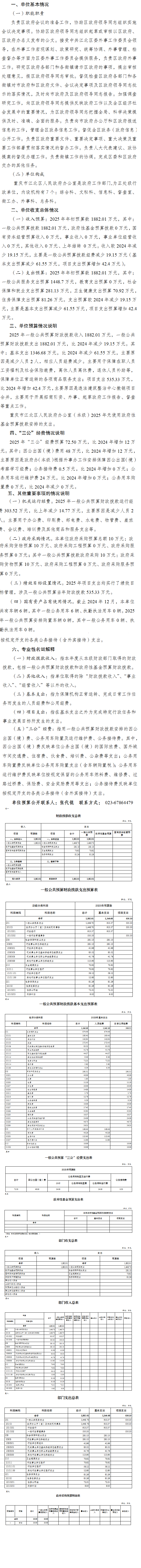 重慶市江北區(qū)人民政府辦公室(本級)2025年單位預(yù)算情況說明