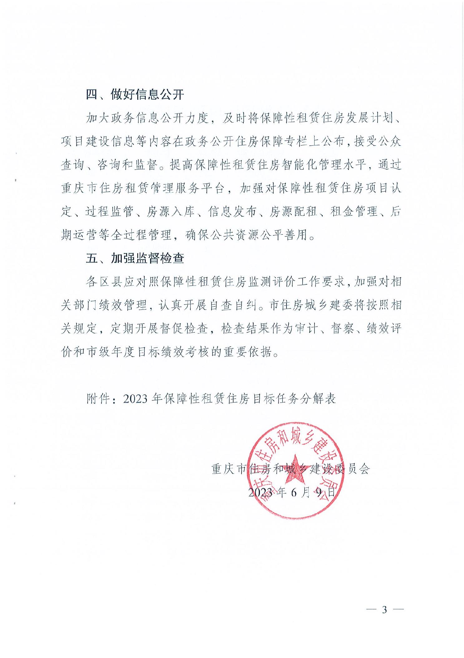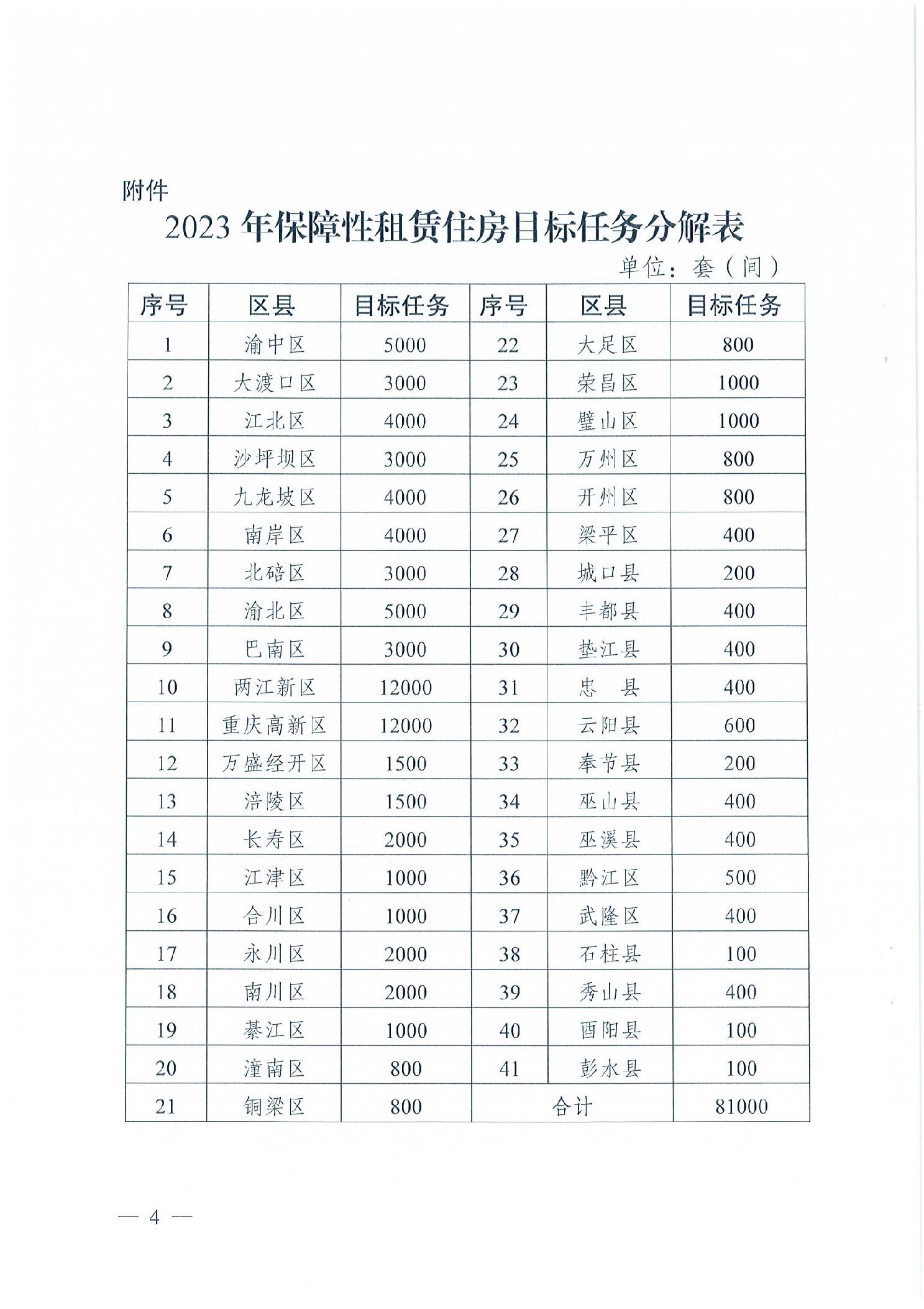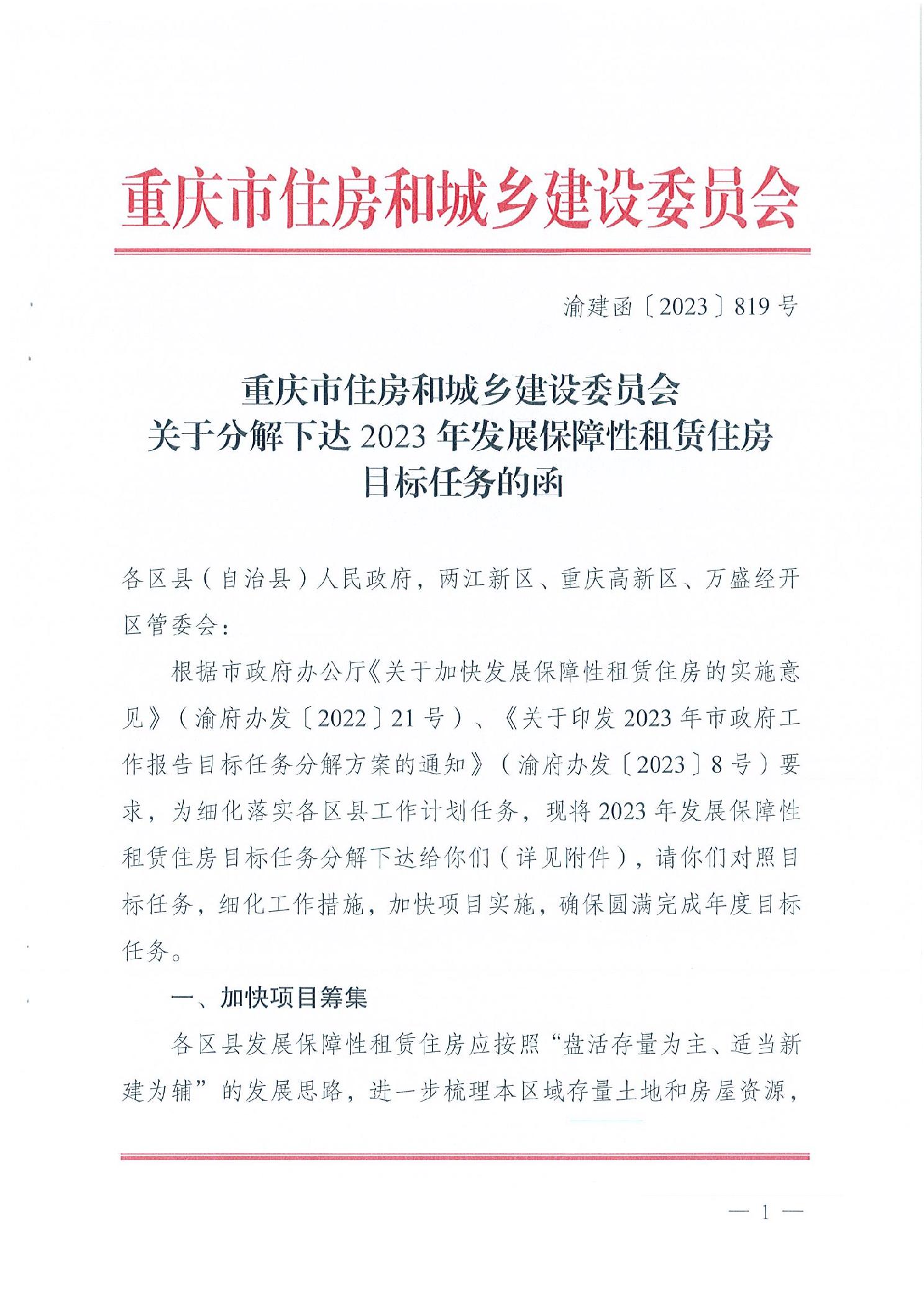 重慶市住房和城鄉(xiāng)建設(shè)委員會(huì)關(guān)于分解下達(dá)2023年發(fā)展保障性租賃住房目標(biāo)任務(wù)的函