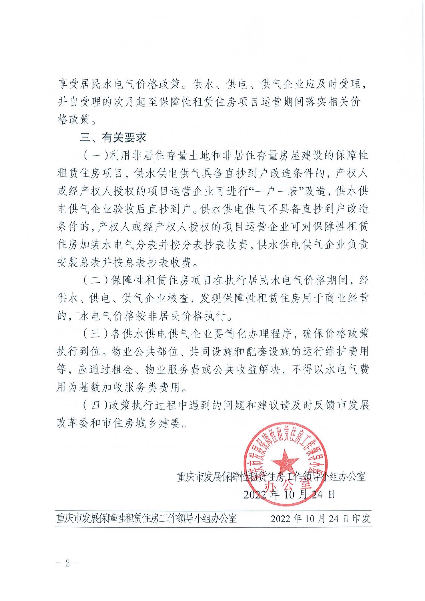 重慶市發(fā)展保障性租賃住房工作領導小組辦公室關于保障性租賃住房項目執(zhí)行民用水電氣價格有關工作的通知
