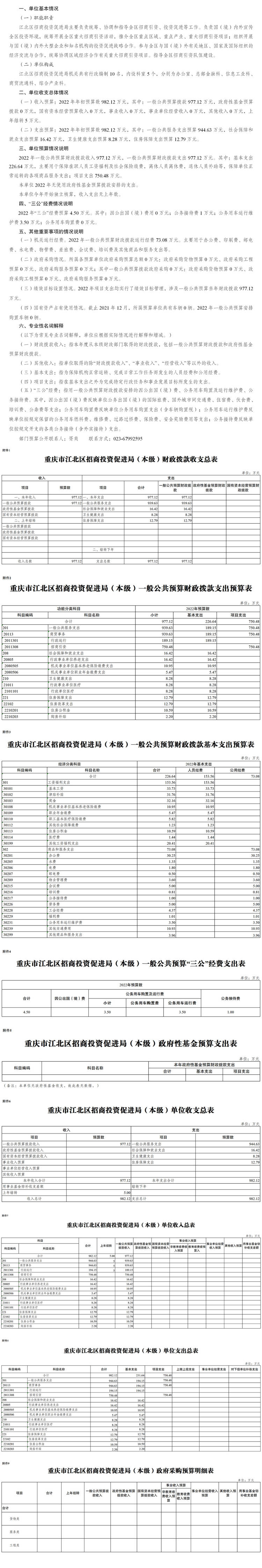 重慶市江北區招商投資促進局機關2022年單位預算情況說明
