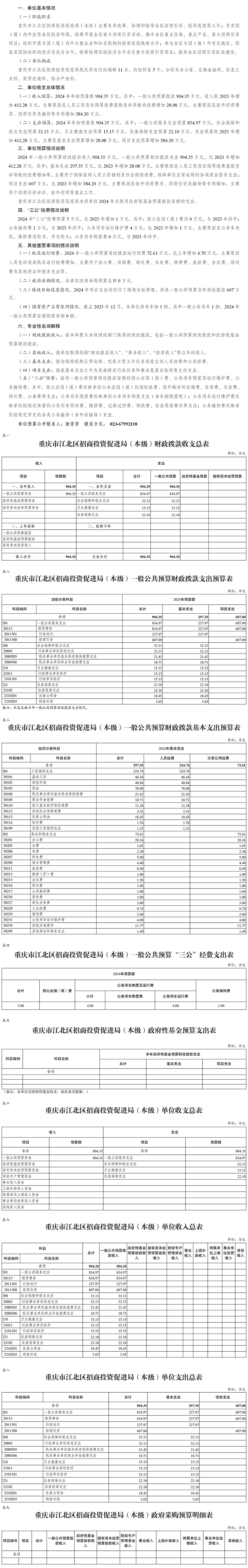 重慶市江北區(qū)招商投資促進(jìn)局(本級(jí))2024年單位預(yù)算情況說明
