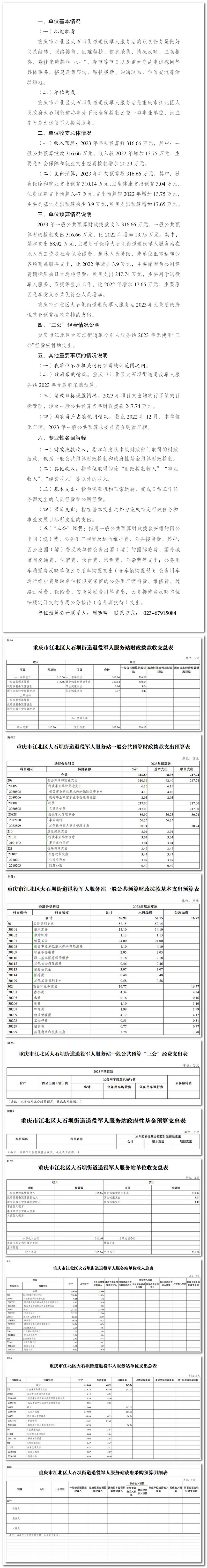 重慶市江北區大石壩街道退役軍人服務站2023年單位預算情況說明