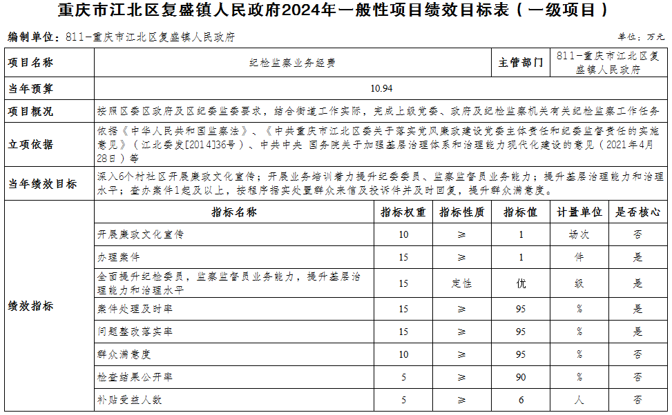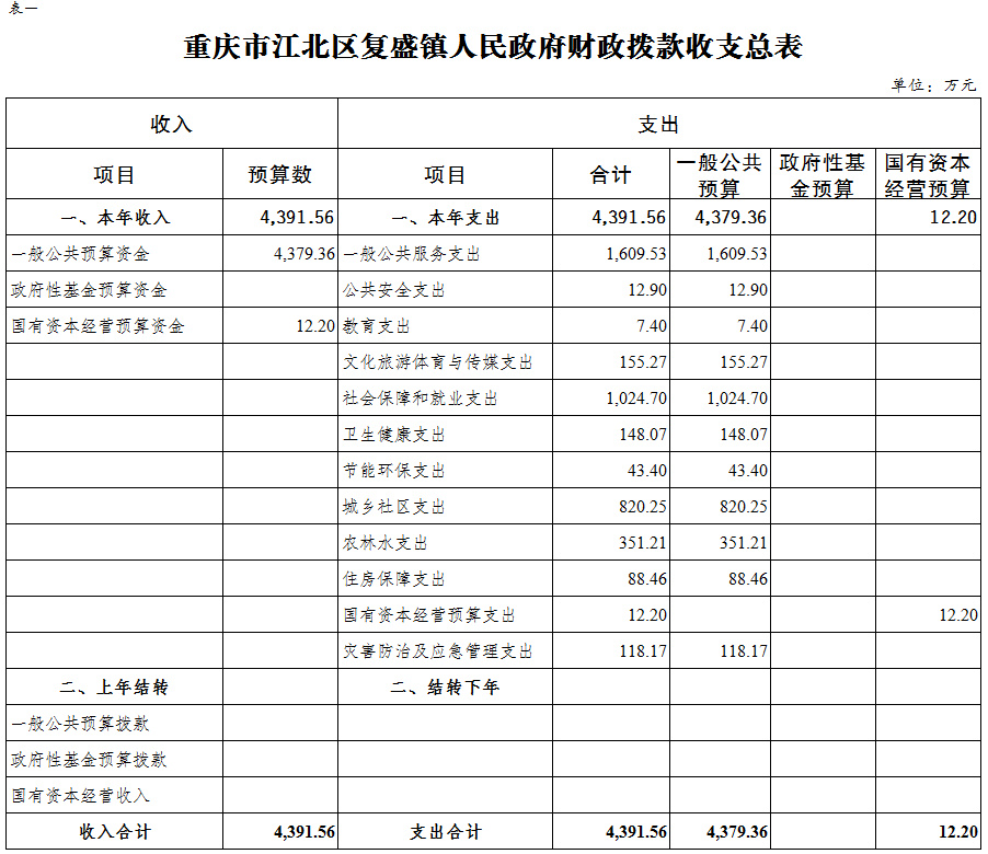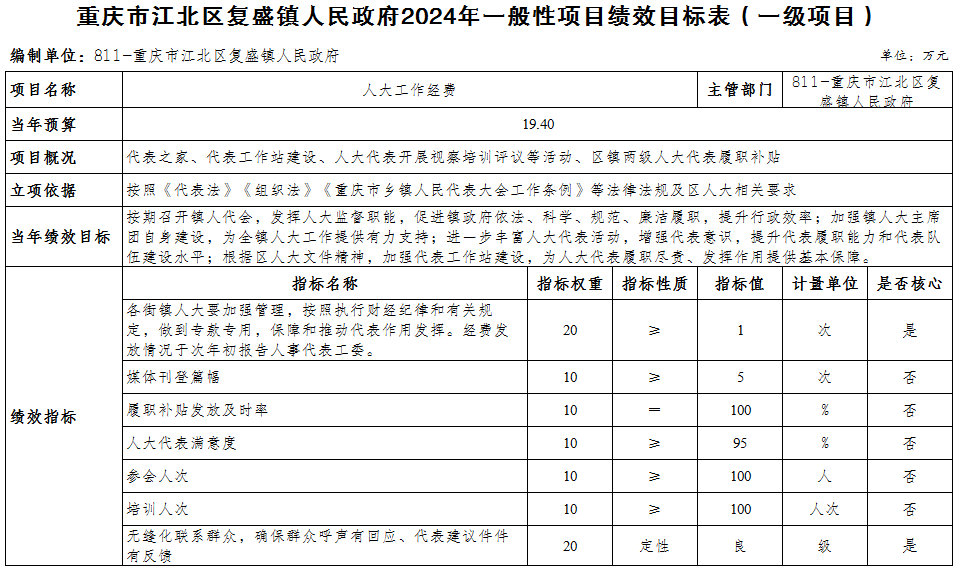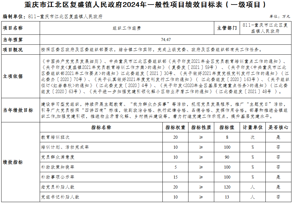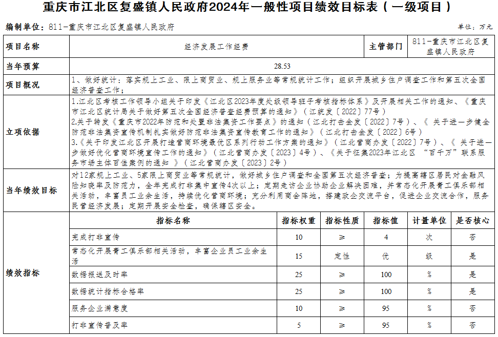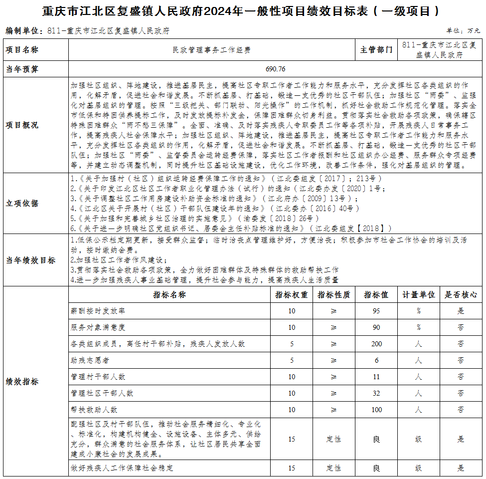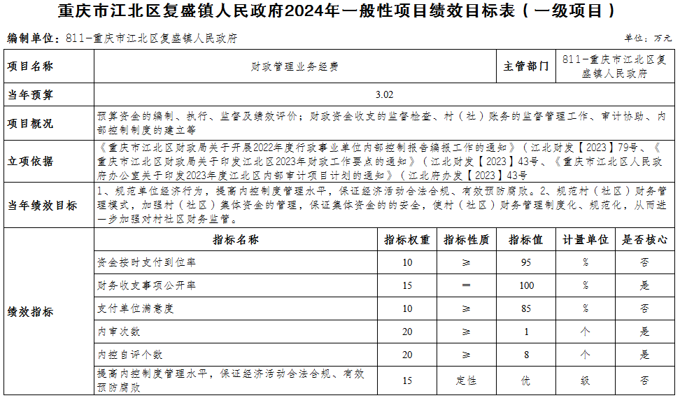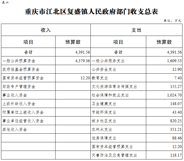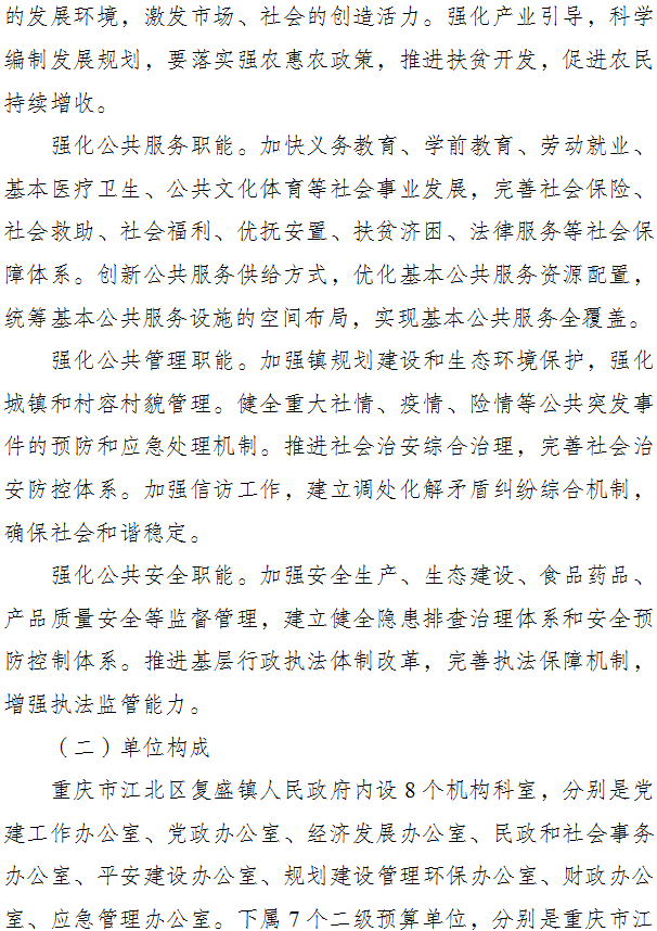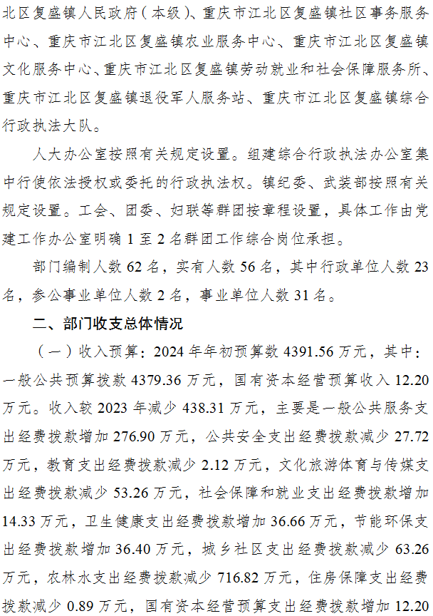 重慶市江北區復盛鎮人民政府 2024年部門預算情況說明