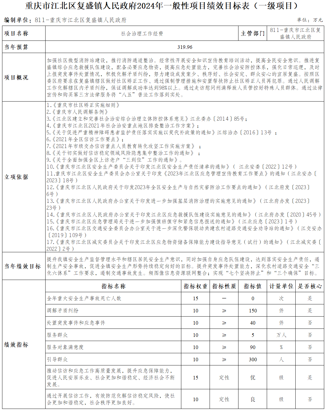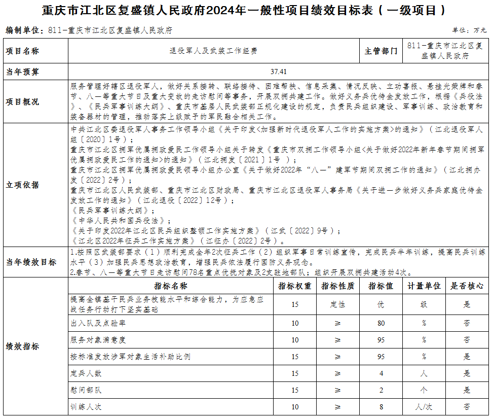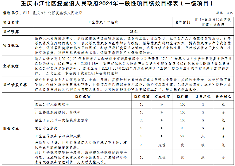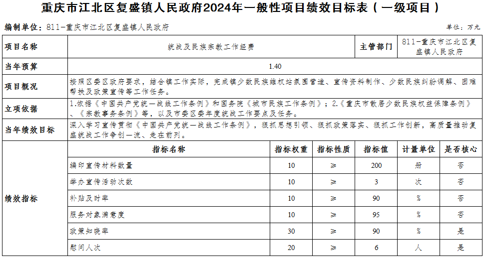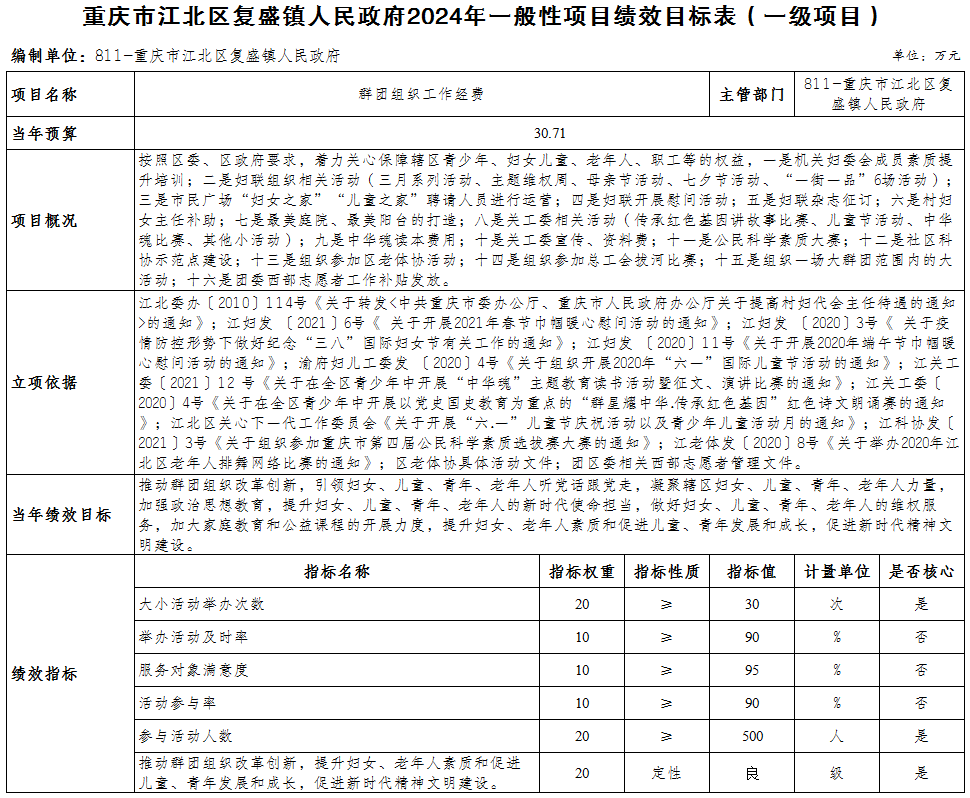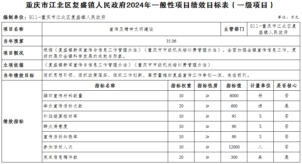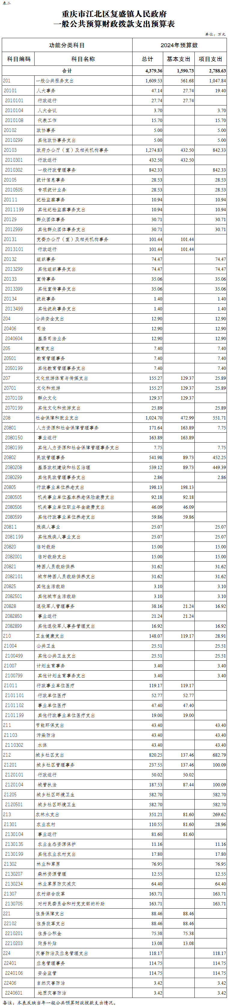 重慶市江北區復盛鎮人民政府 2024年部門預算情況說明