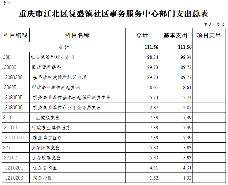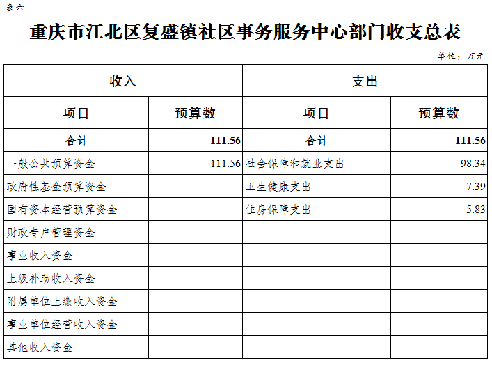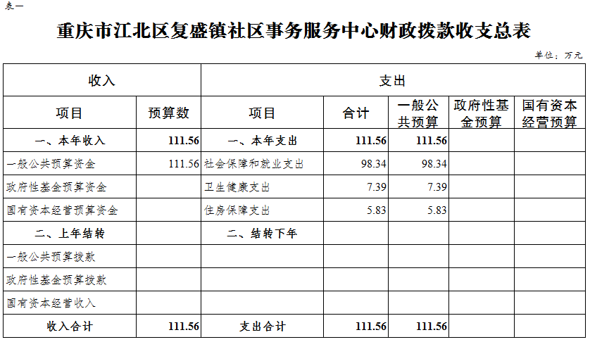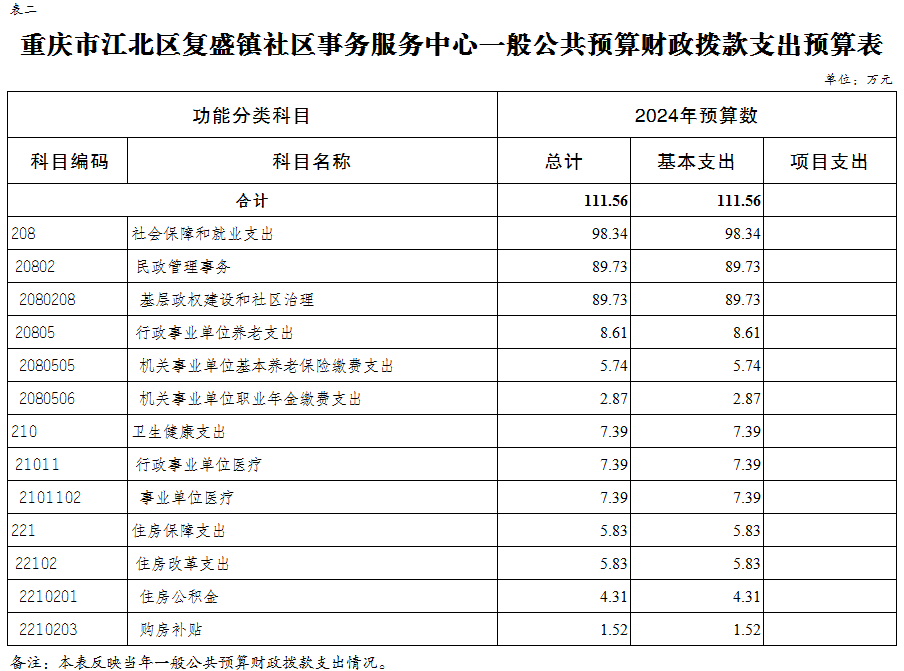 重慶市江北區(qū)復(fù)盛鎮(zhèn)社區(qū)事務(wù)服務(wù)中心 2024年單位預(yù)算情況說明