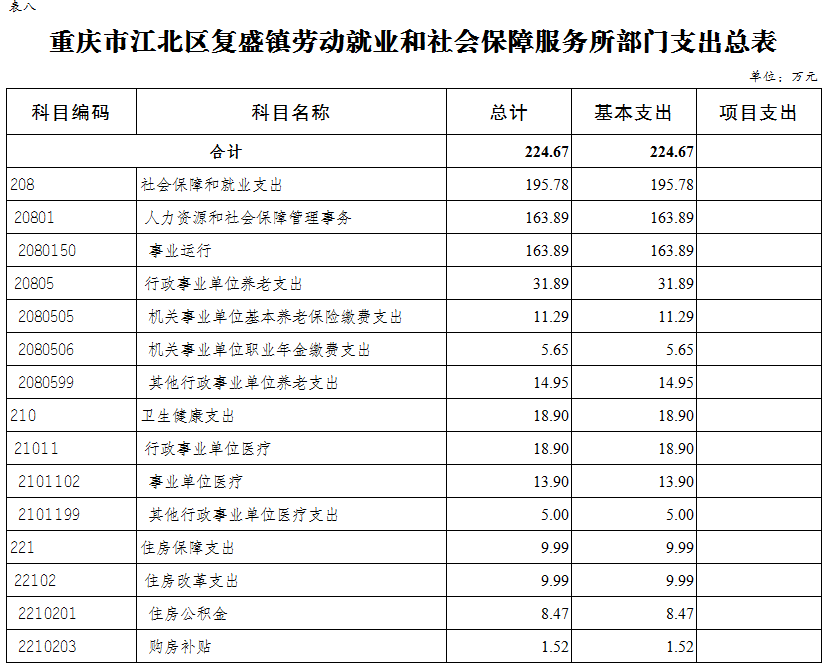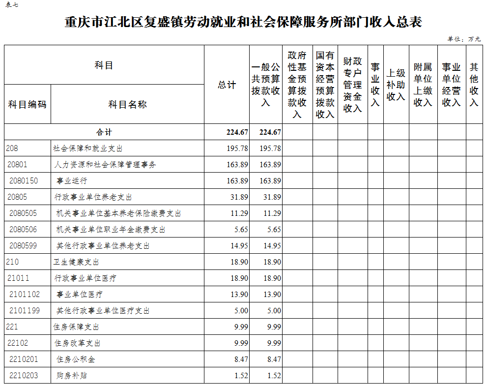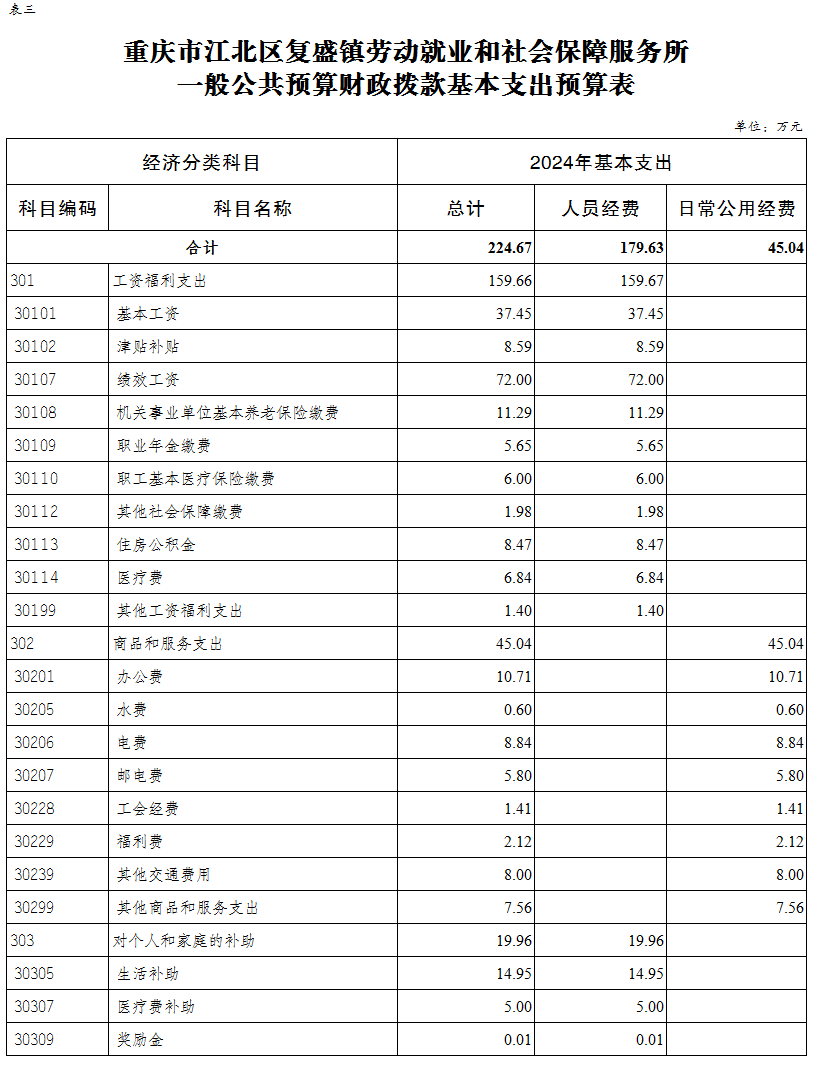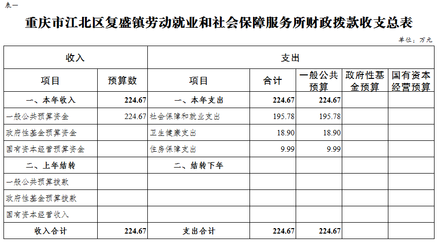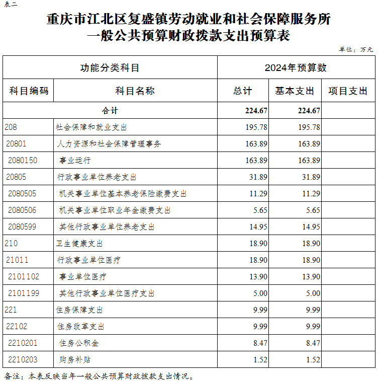 重慶市江北區復盛鎮勞動就業和社會保障服務所2024年單位預算情況說明