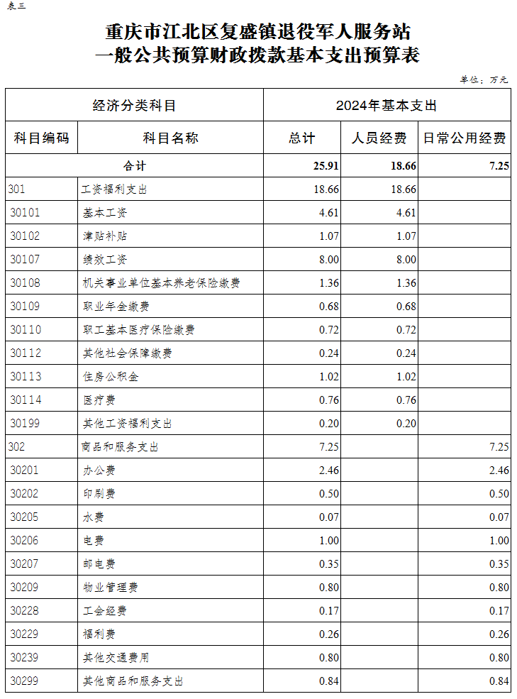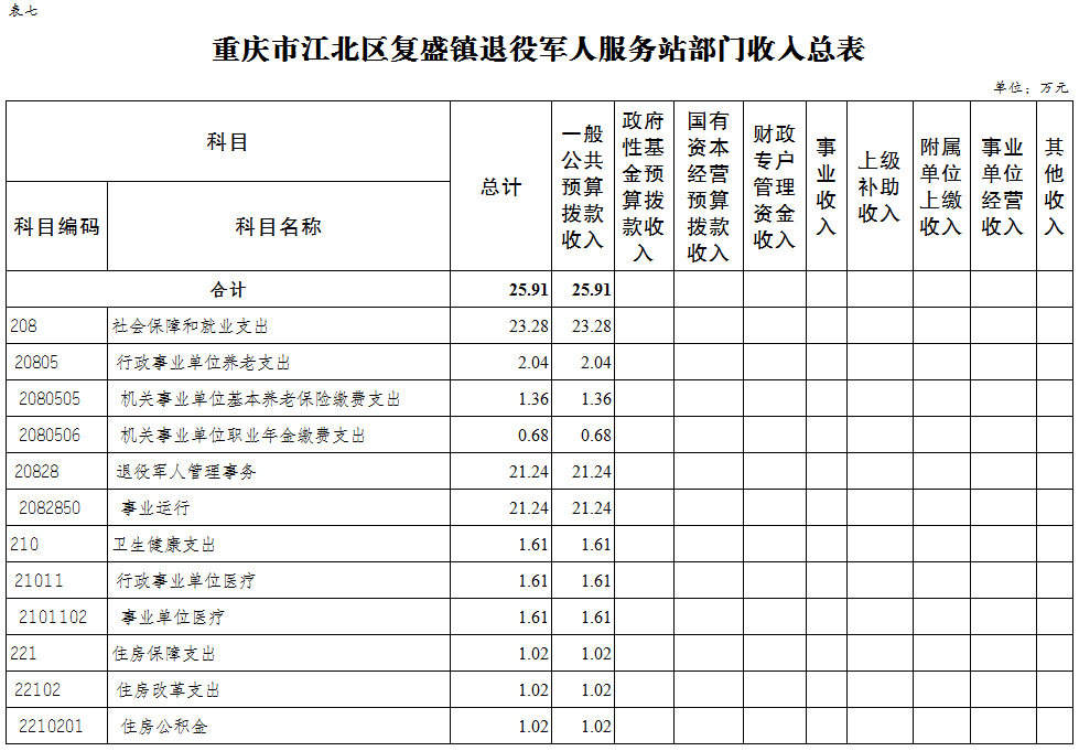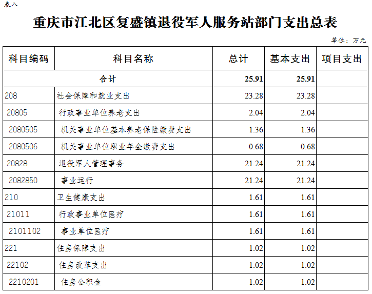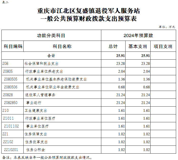 重慶市江北區復盛鎮退役軍人服務站 2024年單位預算情況說明