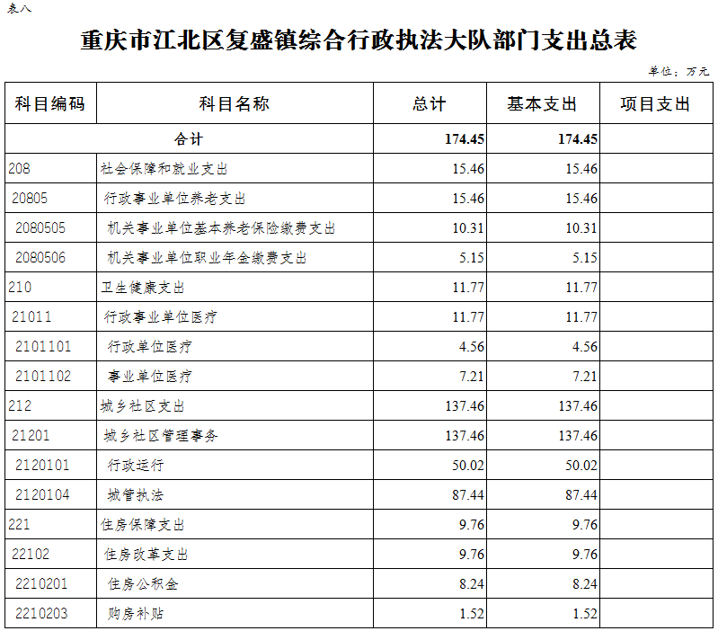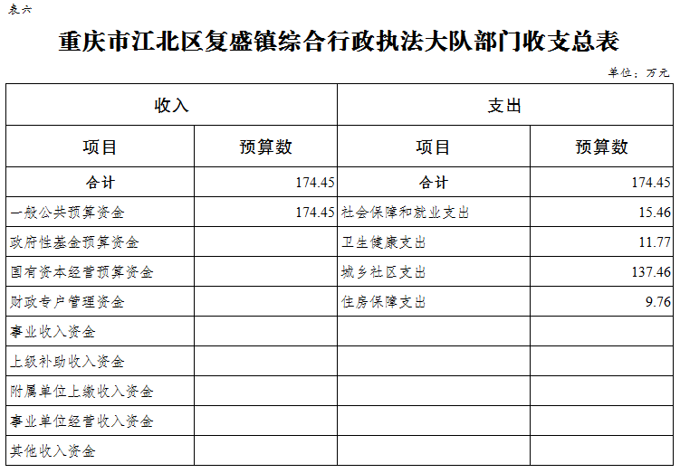 重慶市江北區復盛鎮綜合行政執法大隊 2024年單位預算情況說明