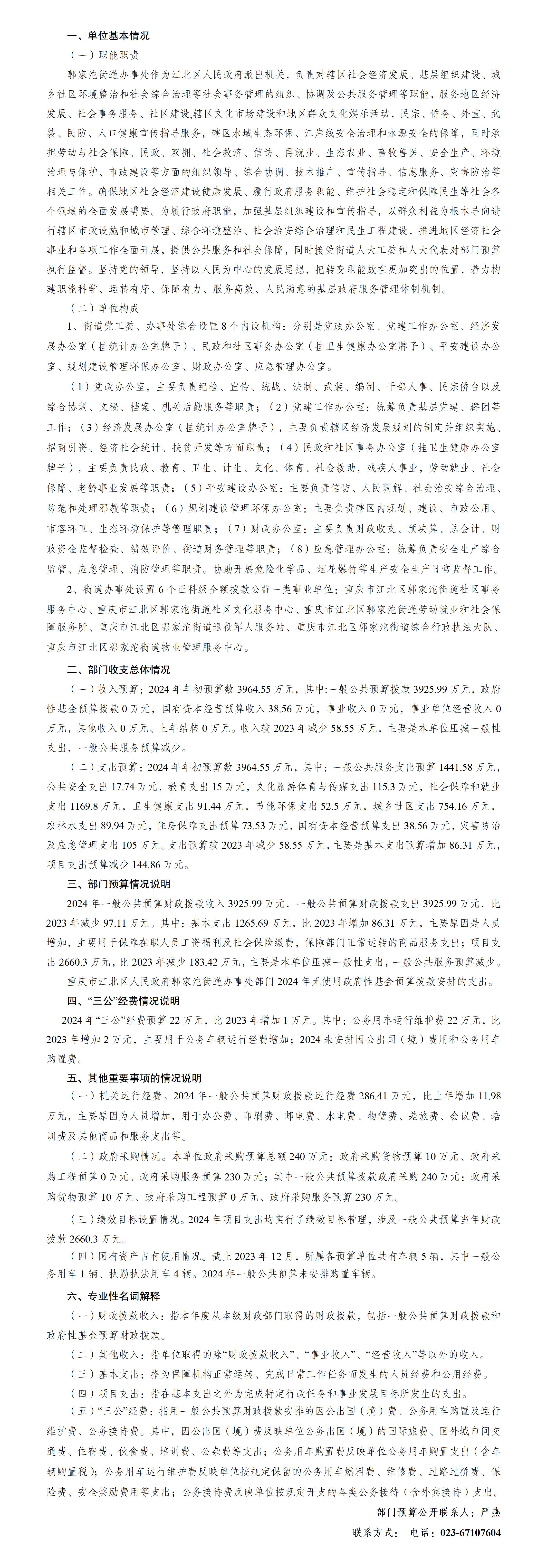 重慶市江北區郭家沱街道辦事處2024年部門預算情況說明