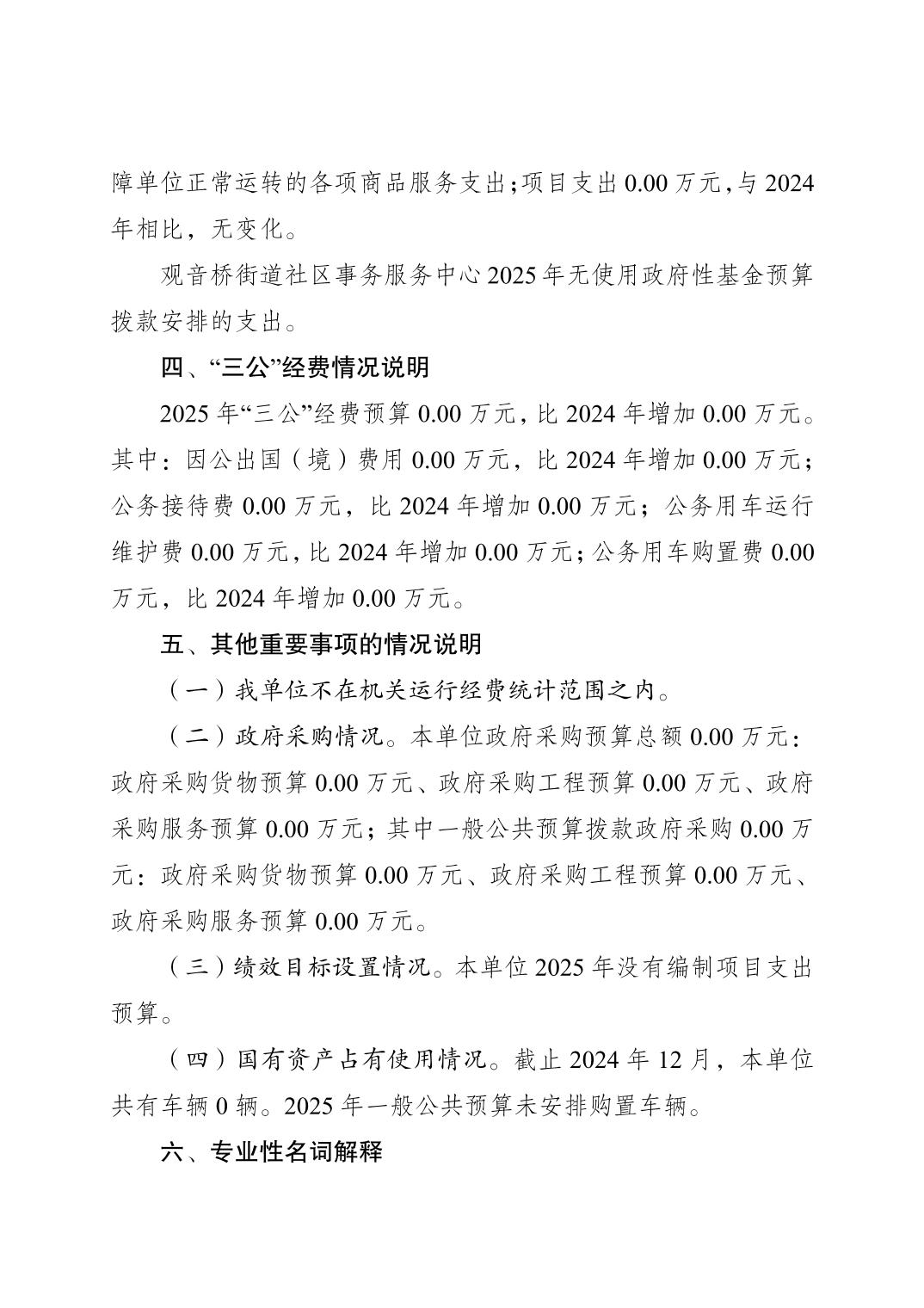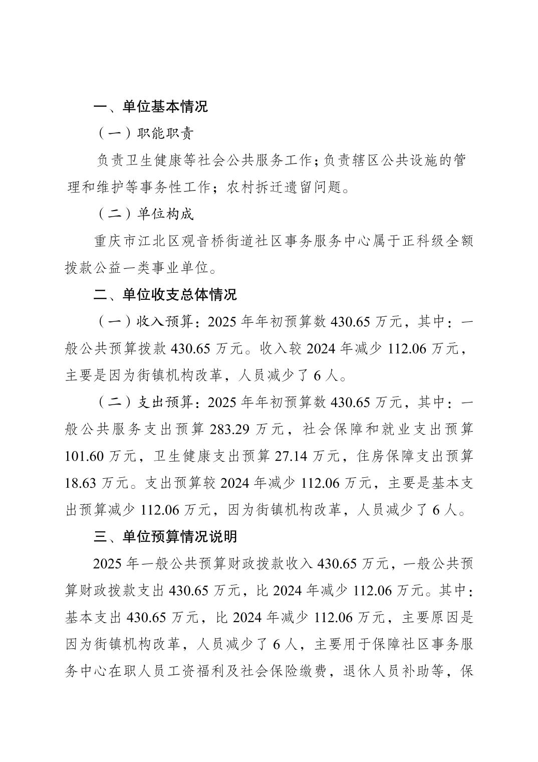 重慶市江北區觀音橋街道社區事務服務中心2025年單位預算情況說明