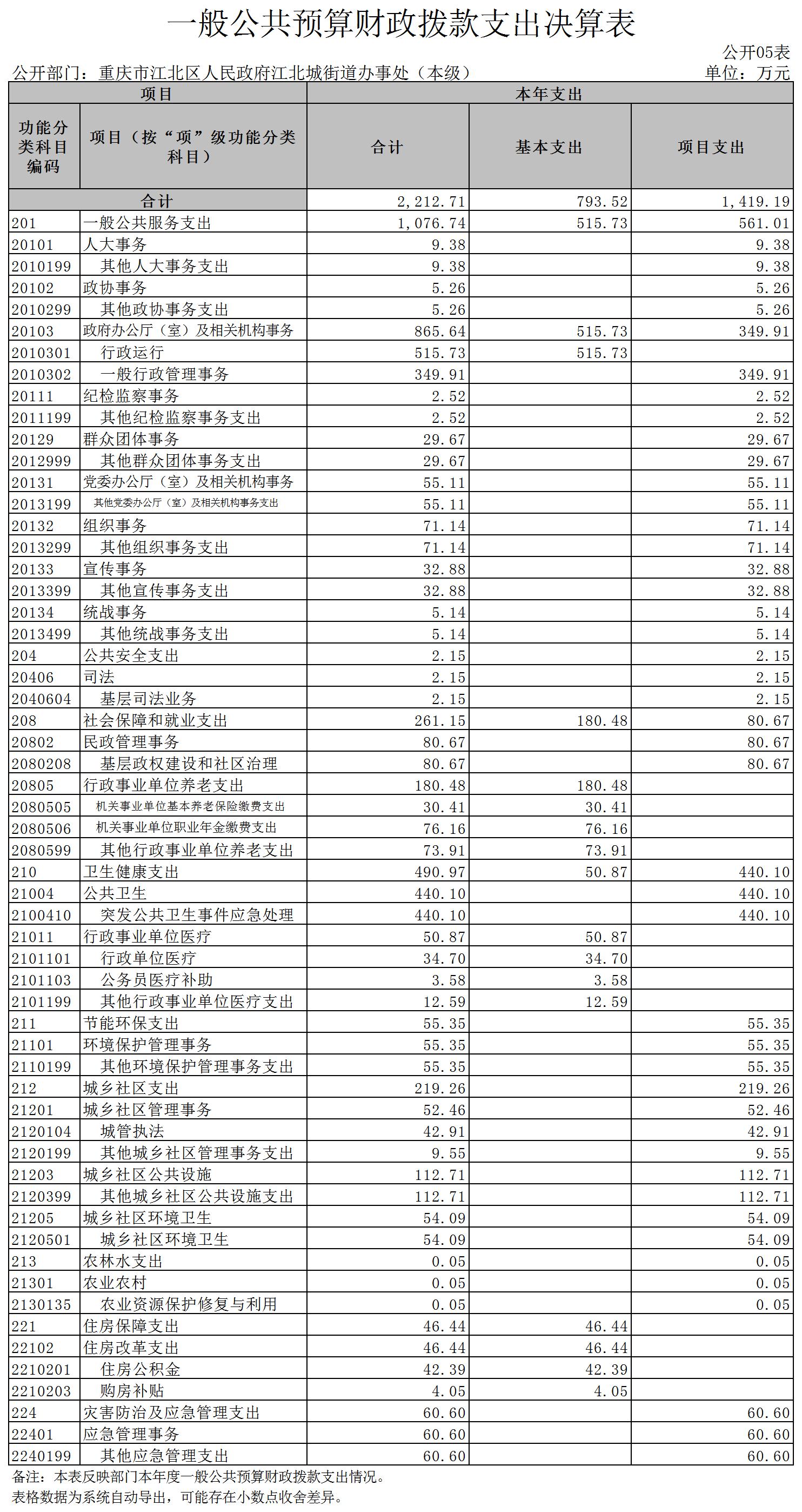 重慶市江北區人民政府江北城街道辦事處(本級)2022年度部門決算說明