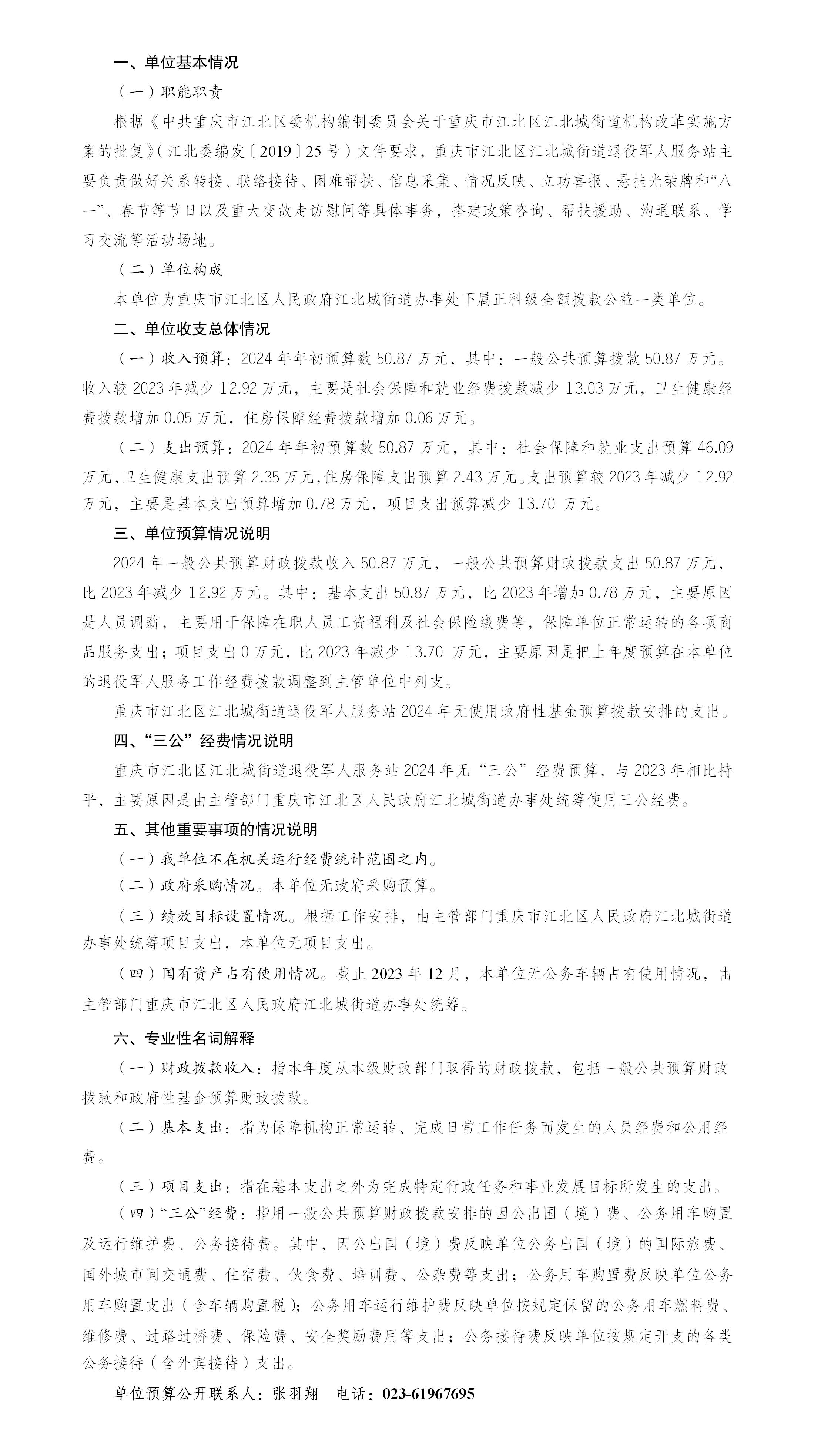 重慶市江北區江北城街道退役軍人服務站2024年單位預算情況說明
