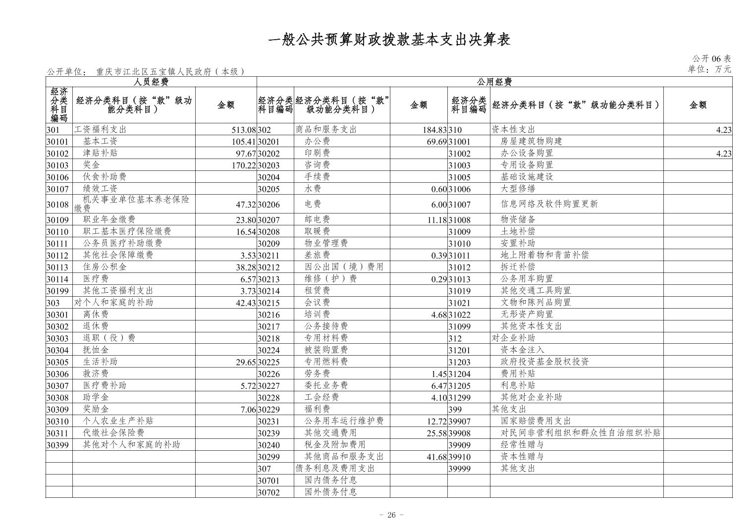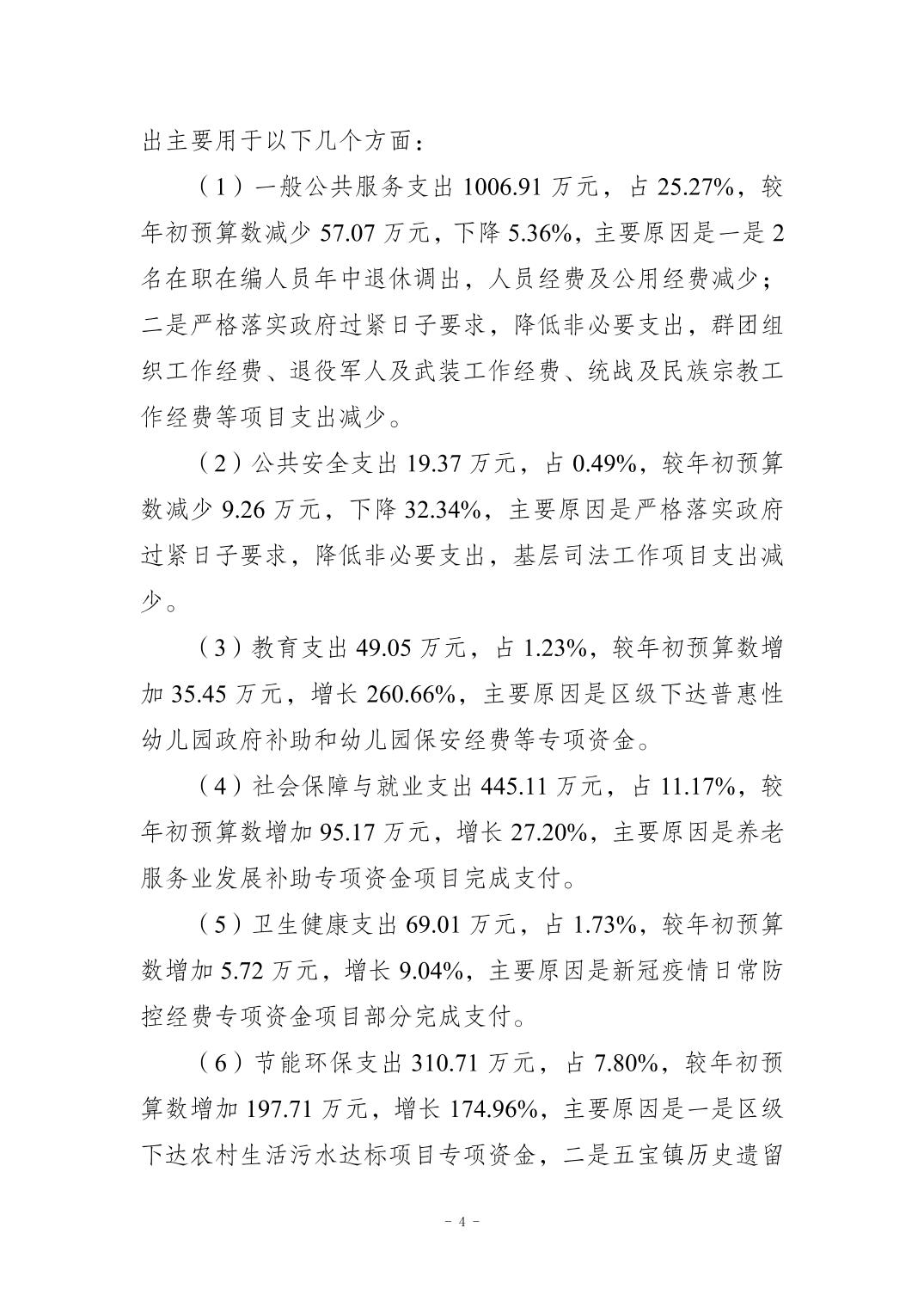 重慶市江北區五寶鎮人民政府(本級)2023年度單位決算情況說明