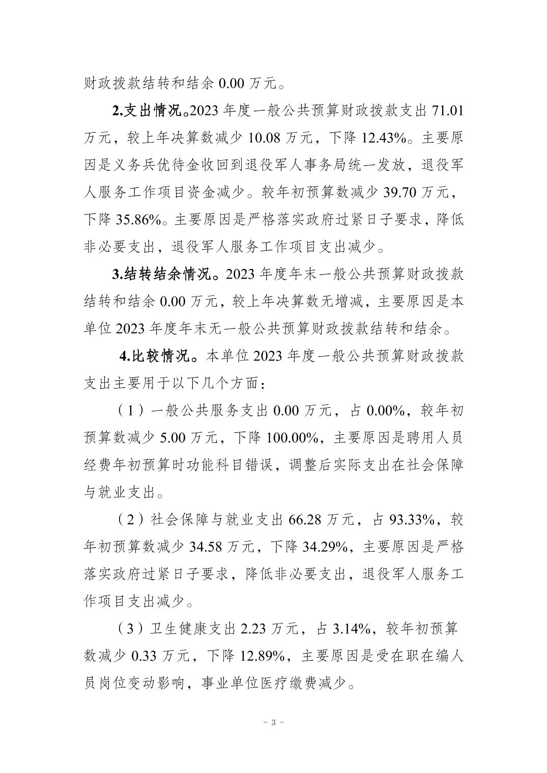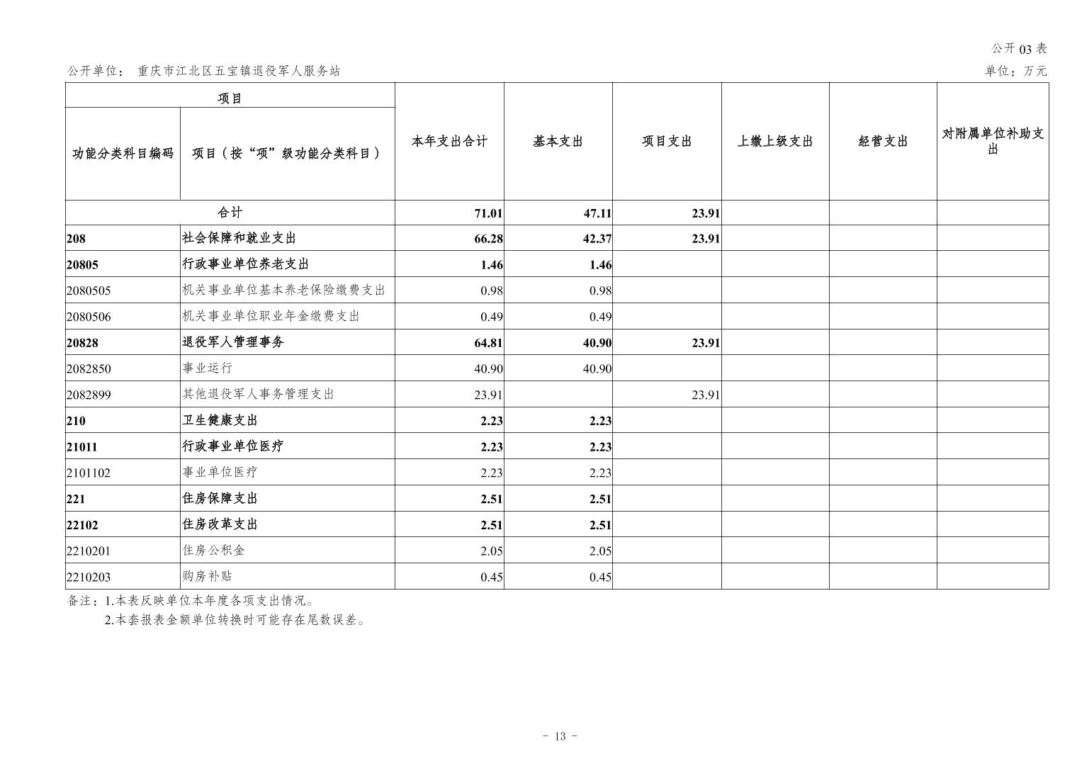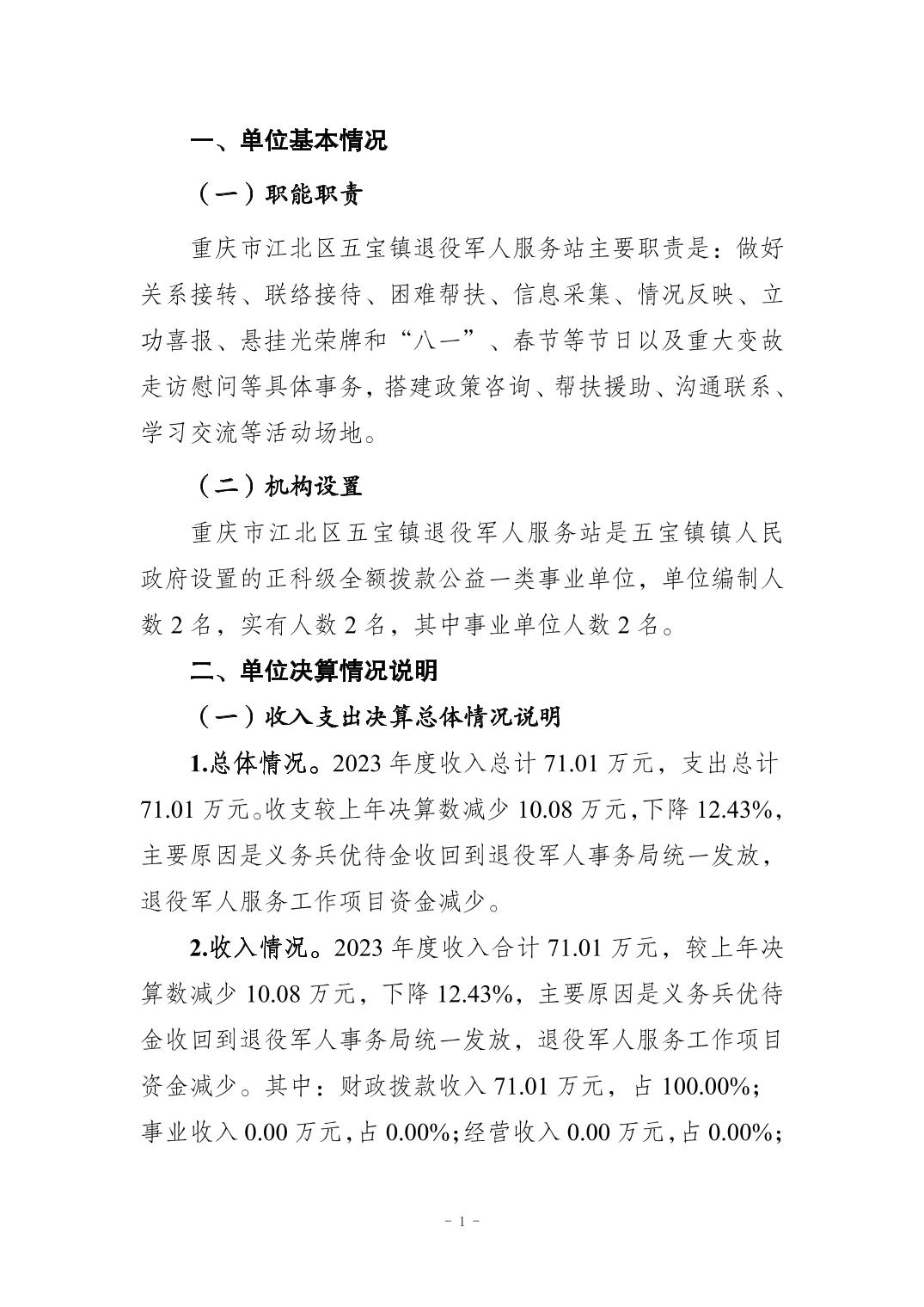 重慶市江北區五寶鎮退役軍人服務站2023年度單位決算情況說明