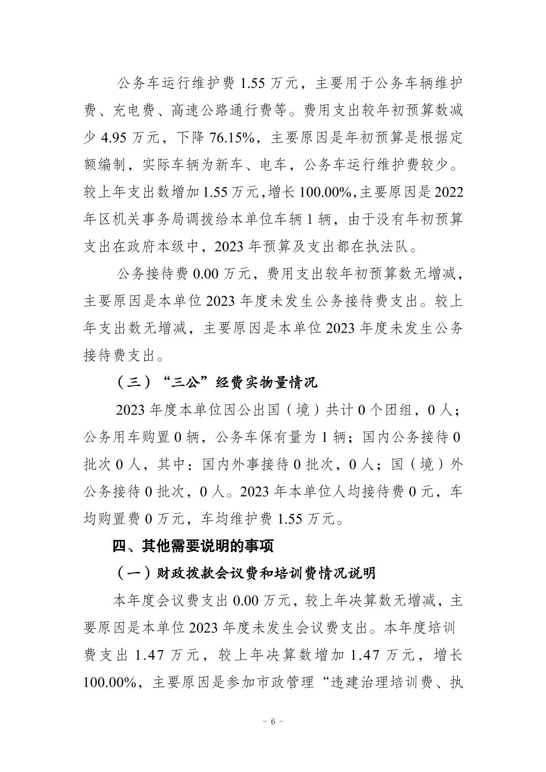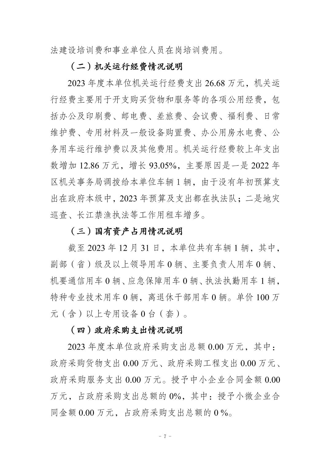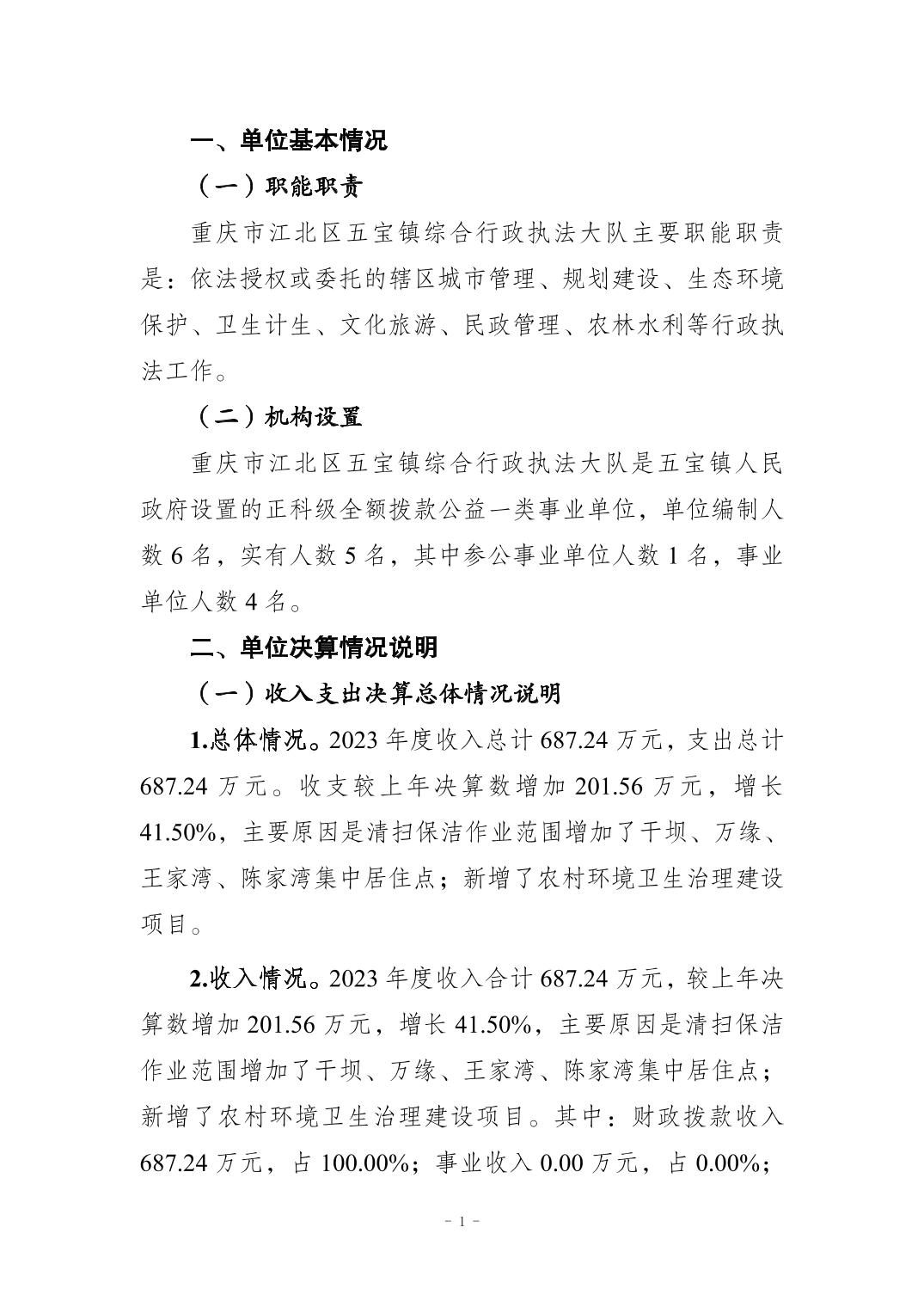 重慶市江北區(qū)五寶鎮(zhèn)綜合行政執(zhí)法大隊2023年度單位決算情況說明