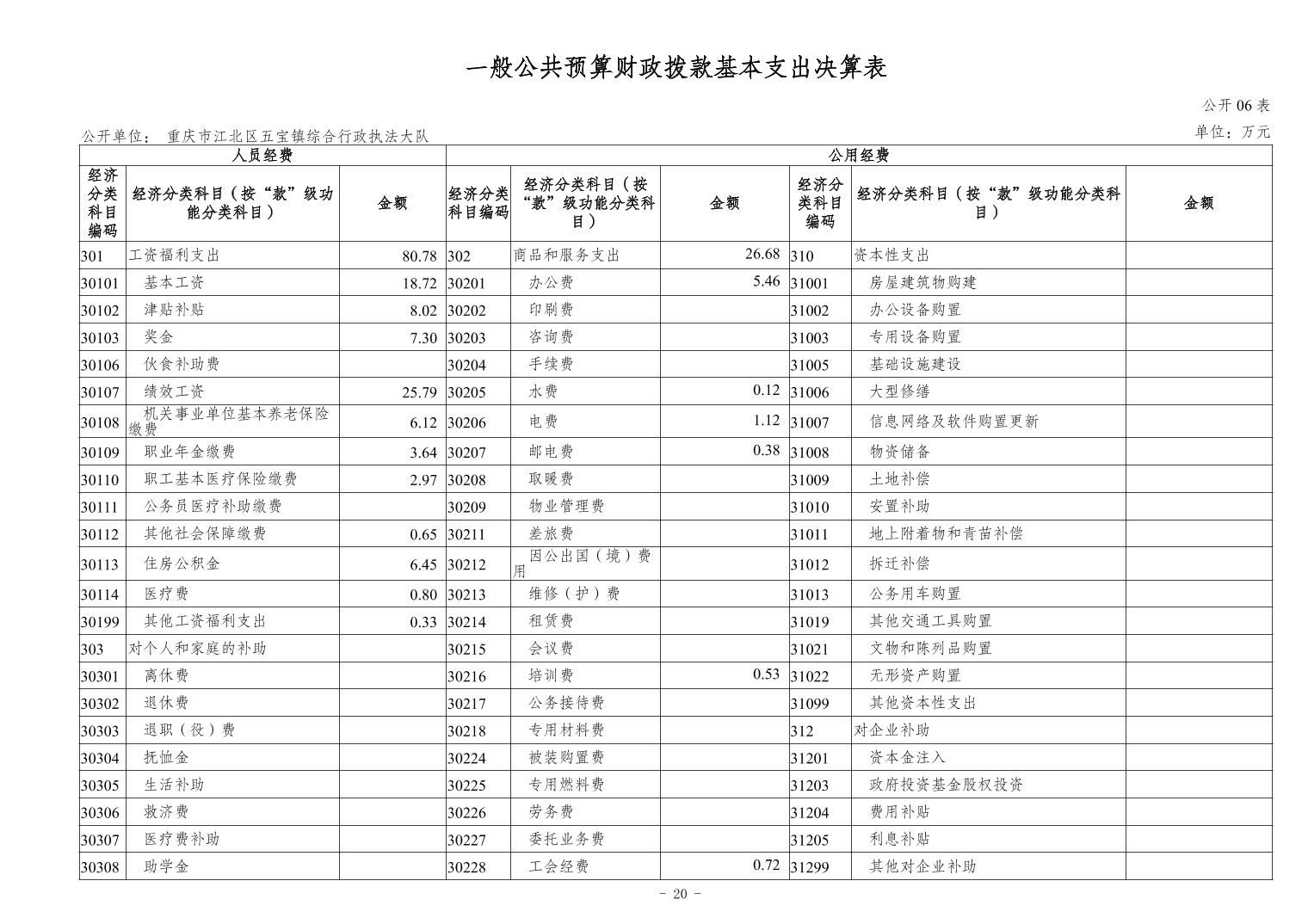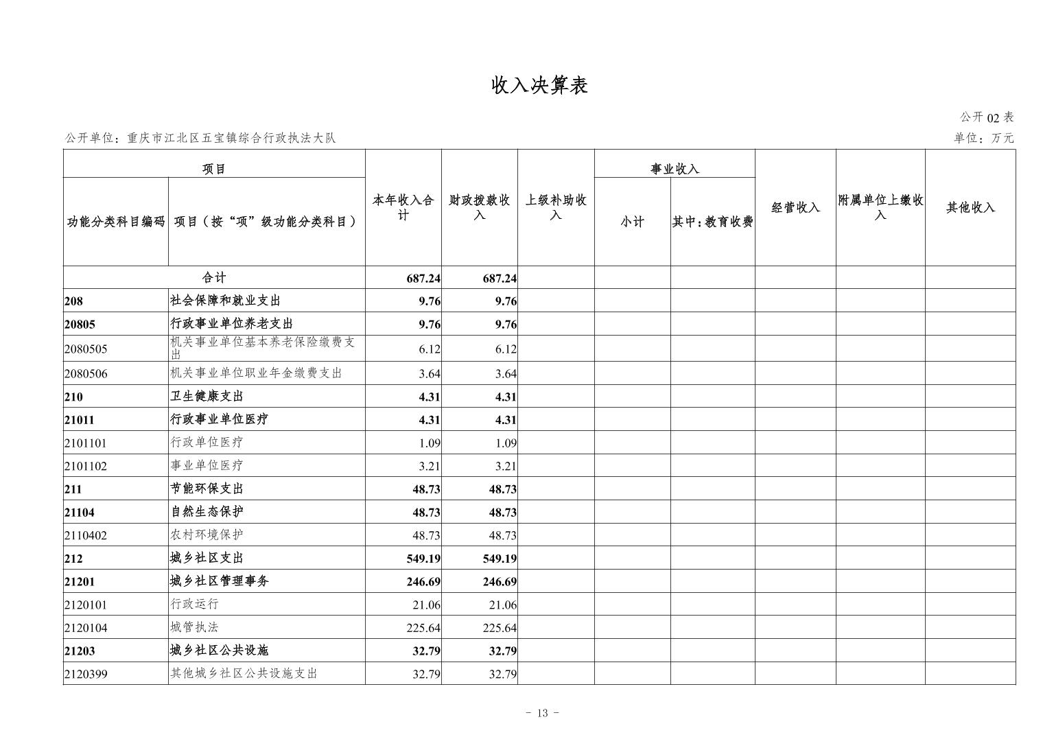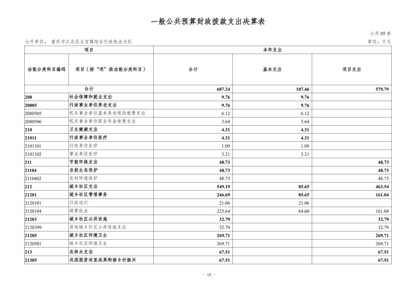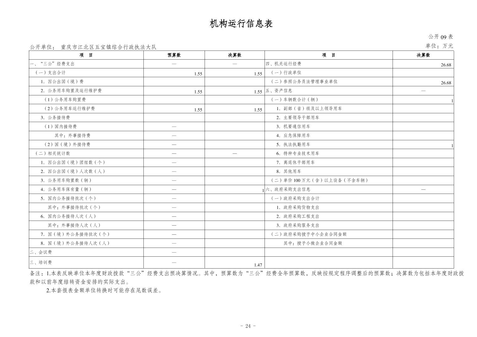 重慶市江北區(qū)五寶鎮(zhèn)綜合行政執(zhí)法大隊2023年度單位決算情況說明