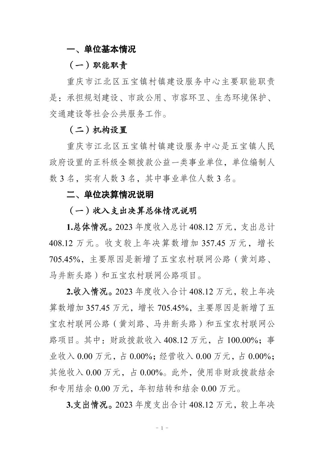 重慶市江北區五寶鎮村鎮建設服務中心2023年度單位決算情況說明