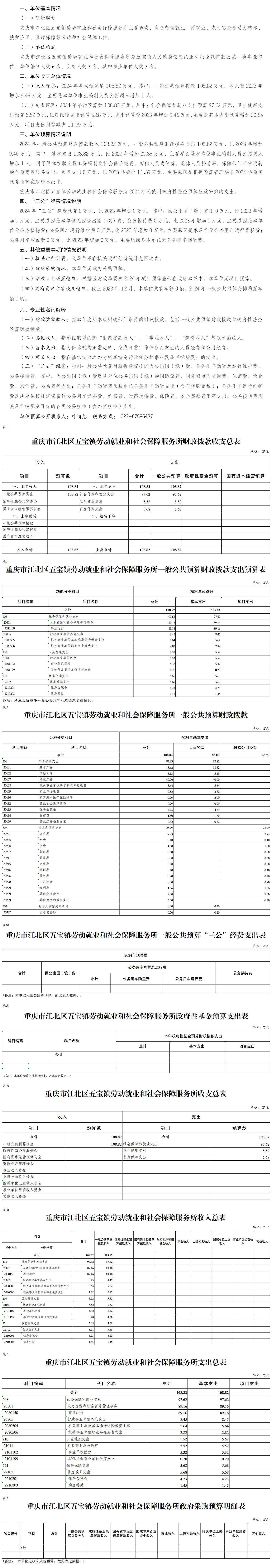 重慶市江北區五寶鎮人民政府勞動就業和社會保障服務所2024年度部門預算公開情況說明