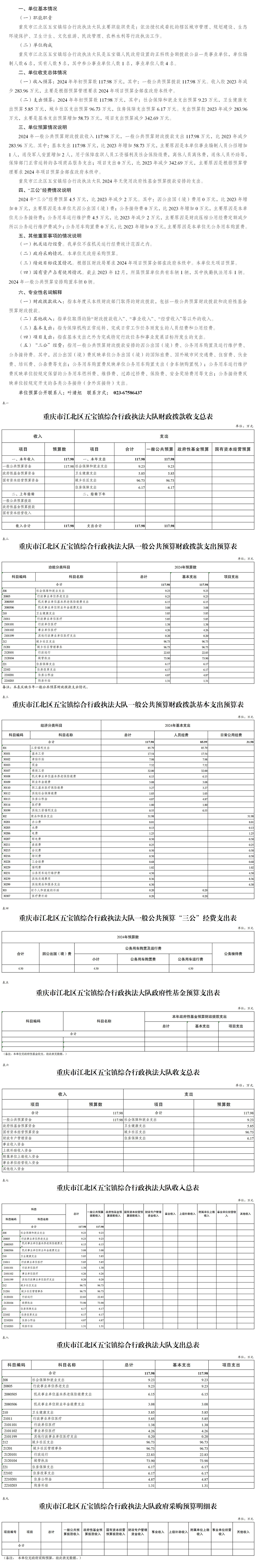 重慶市江北區(qū)五寶鎮(zhèn)人民政府綜合行政執(zhí)法大隊2024年度部門預(yù)算公開情況說明