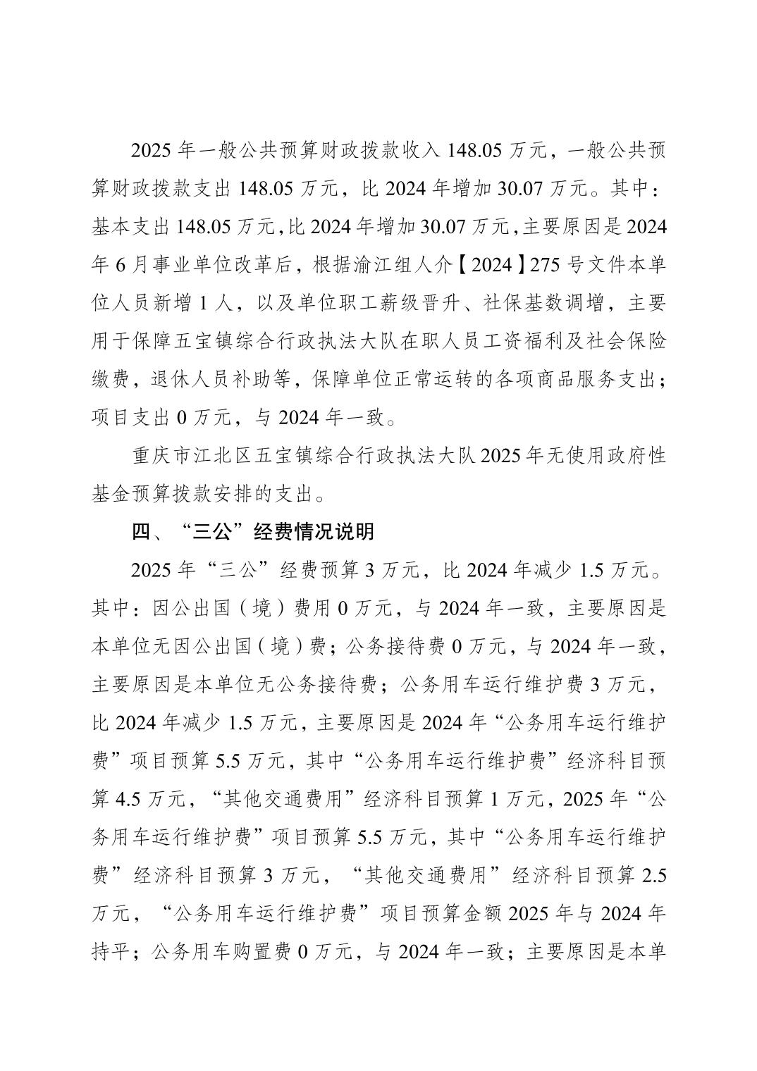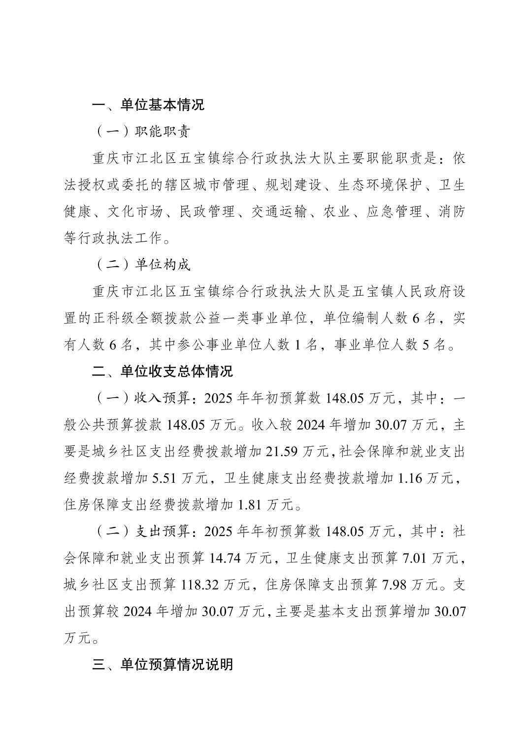 重慶市江北區(qū)五寶鎮(zhèn)綜合行政執(zhí)法大隊(duì)2025年單位預(yù)算情況說明