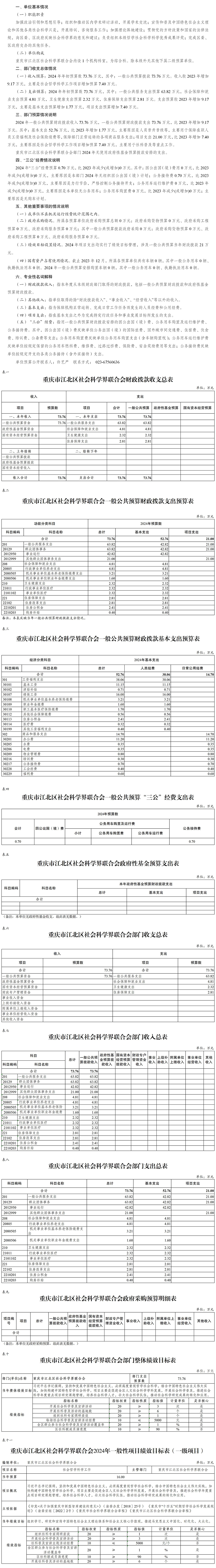 重慶市江北區社會科學界聯合會2024年部門預算情況說明