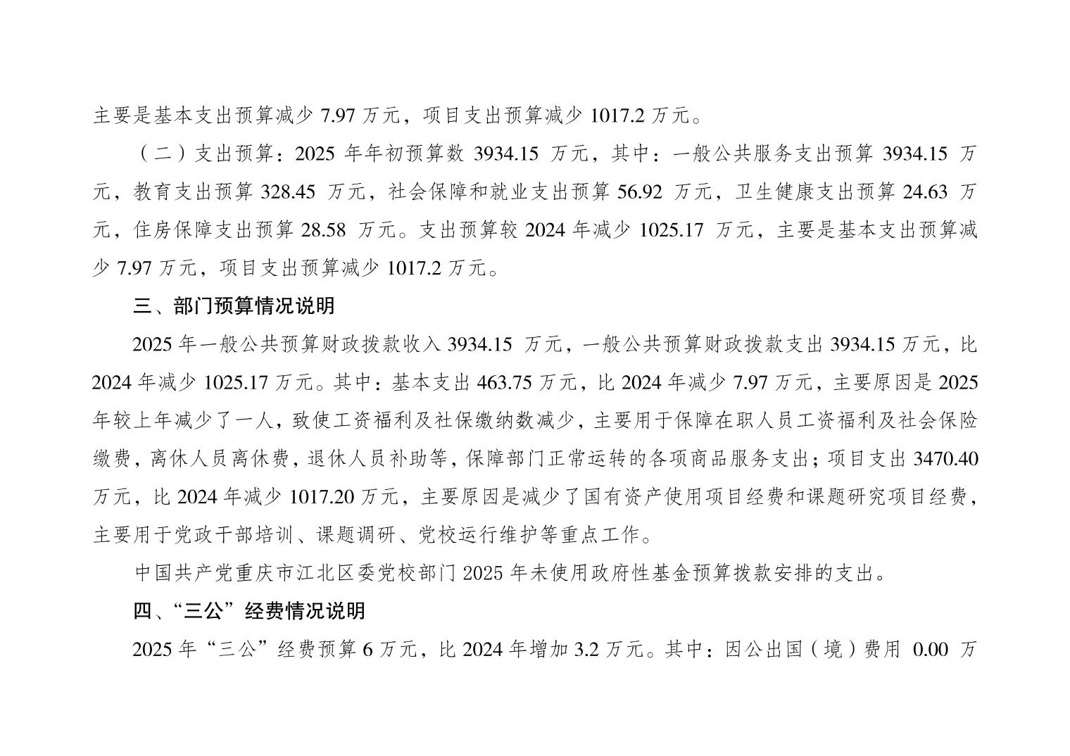中國共產(chǎn)黨重慶市江北區(qū)委員會黨校2025年部門預(yù)算情況說明