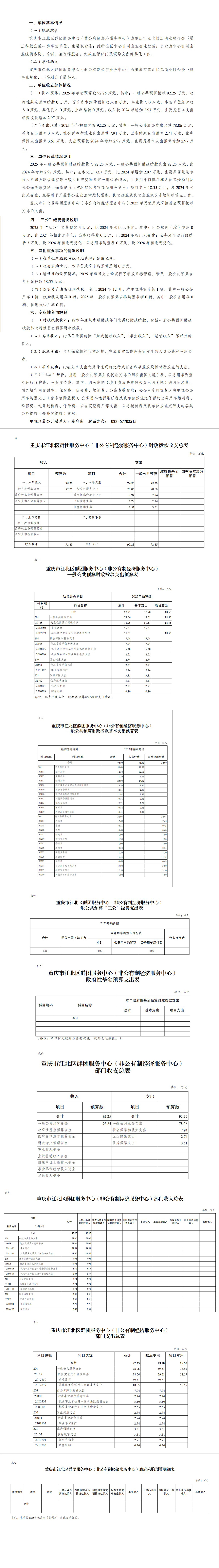 重慶市江北區群團服務中心(非公有制經濟服務中心)2025年單位預算情況說明